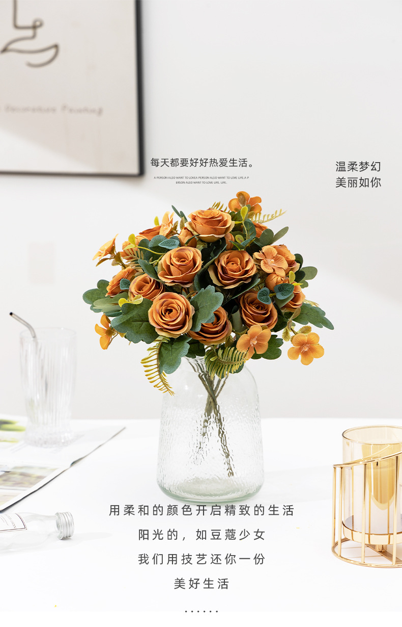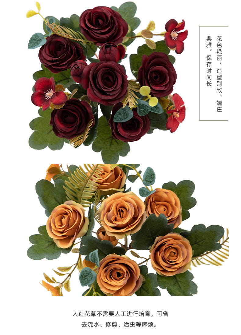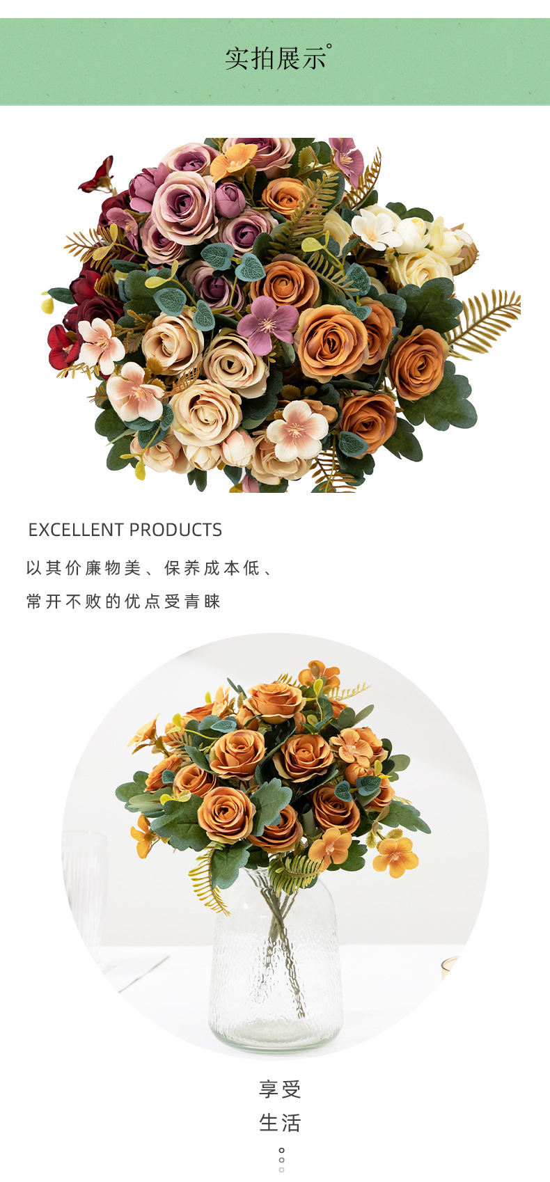 Suministro transfronterizo de otoño artificial Rosa ramo de flores artificiales sala de estar decoración de la boda artesanía flor falsa al por mayor