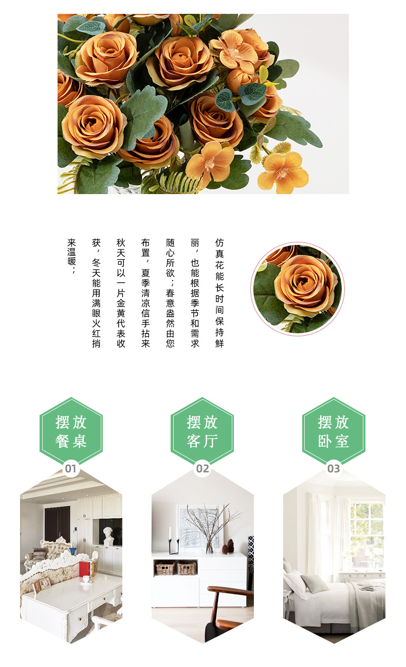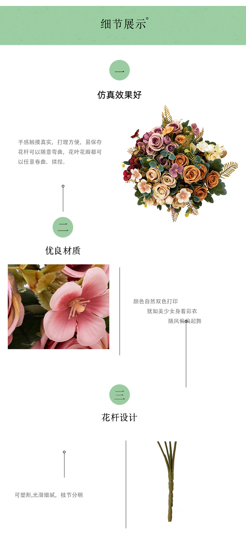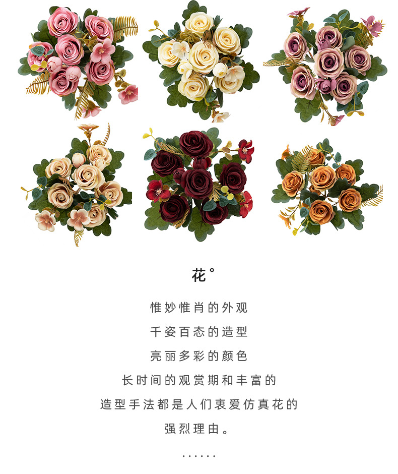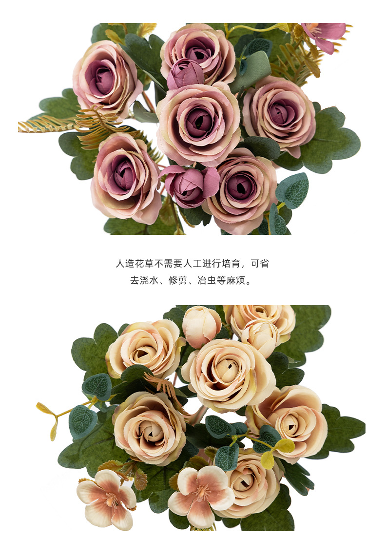 Suministro transfronterizo de otoño artificial Rosa ramo de flores artificiales sala de estar decoración de la boda artesanía flor falsa al por mayor