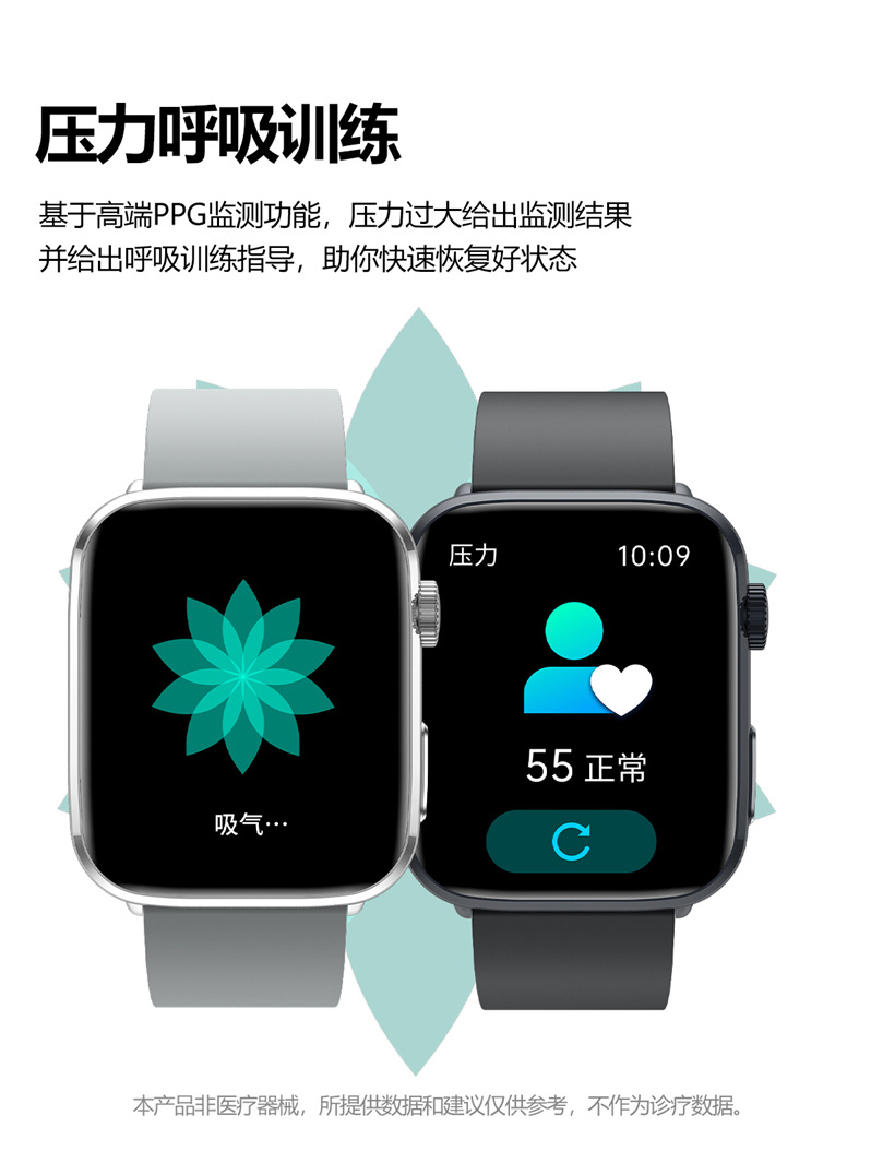 | Function points | 1.85-inch super retina 240*284 full touch screen, Bluetooth call, noninvasive blood sugar monitoring, HRV detection, body temperature monitoring, Meto function, SOS emergency call function, heart rate monitoring, red true blood oxygen monitoring, blood pressure monitoring, respiratory training, women's health (menstrual tracking), sleep monitoring, stress detection, sedentary reminder, NFC access control function, rotary encoder, etc. Step counting/calories/distance, multi-movement mode, alarm clock, weather forecast, intelligent voice assistant, game, flashlight, music playback and control, calculator, calendar, stopwatch. APP:Hband. |