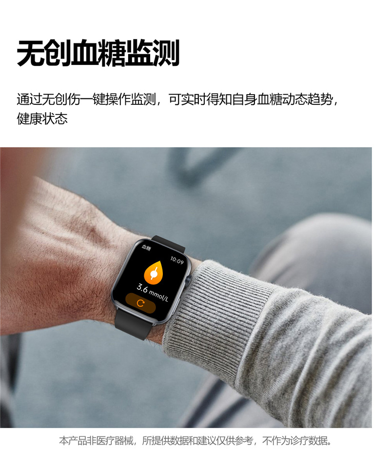 | Health Features | Non-invasive blood glucose measurement, HRV detection, body temperature monitoring, Metope function, SOS emergency call function, heart rate monitoring, blood oxygen monitoring, blood pressure monitoring, respiratory training, women's health (menstrual tracking), sleep monitoring, stress detection, sedentary reminder and other health functions. | 健康特色功能 | 无创血糖测量,HRV检测,体温监测,梅脱功能,SOS紧急呼叫功能,心率监测,血氧监测,血压监测,呼吸训练、女性健康(经期跟踪),睡眠监测、压力检测,久坐提醒等健康功能。 | |||||