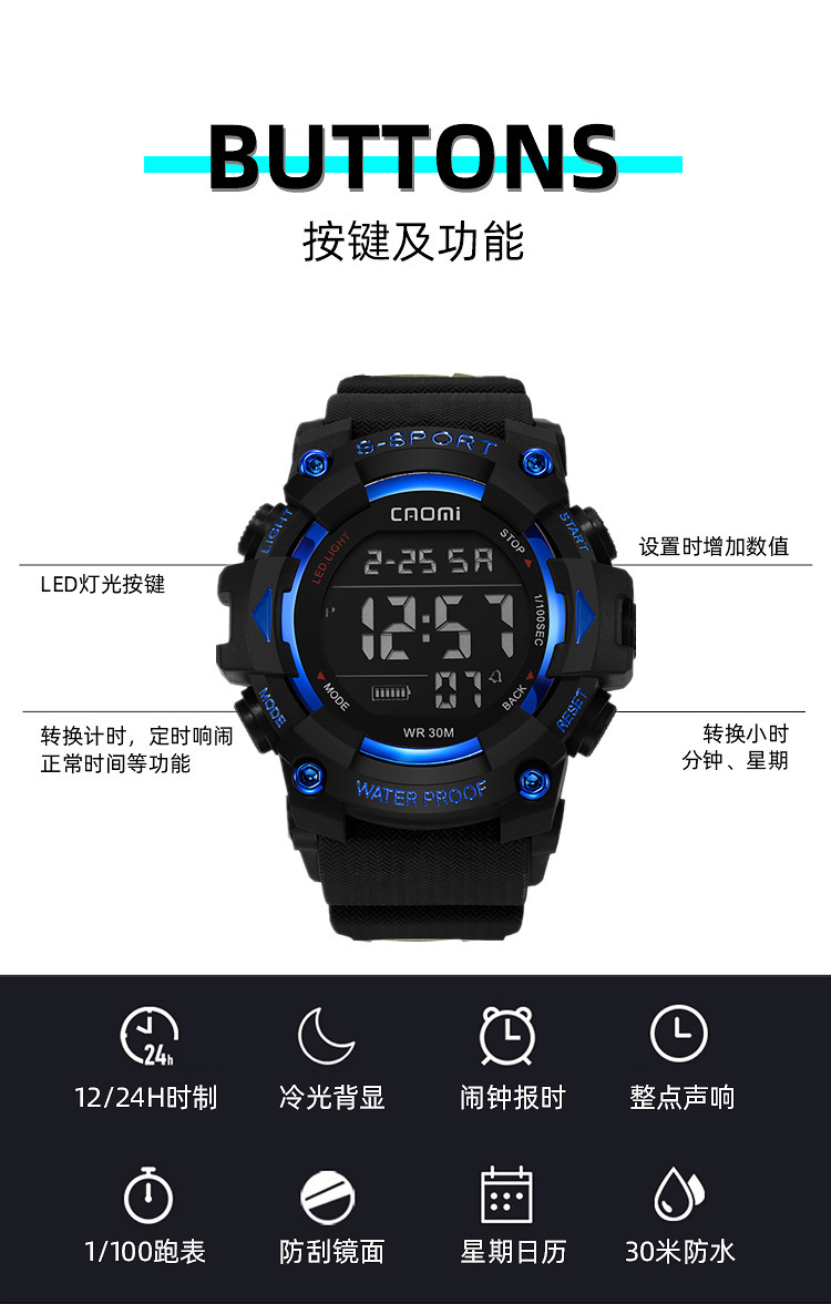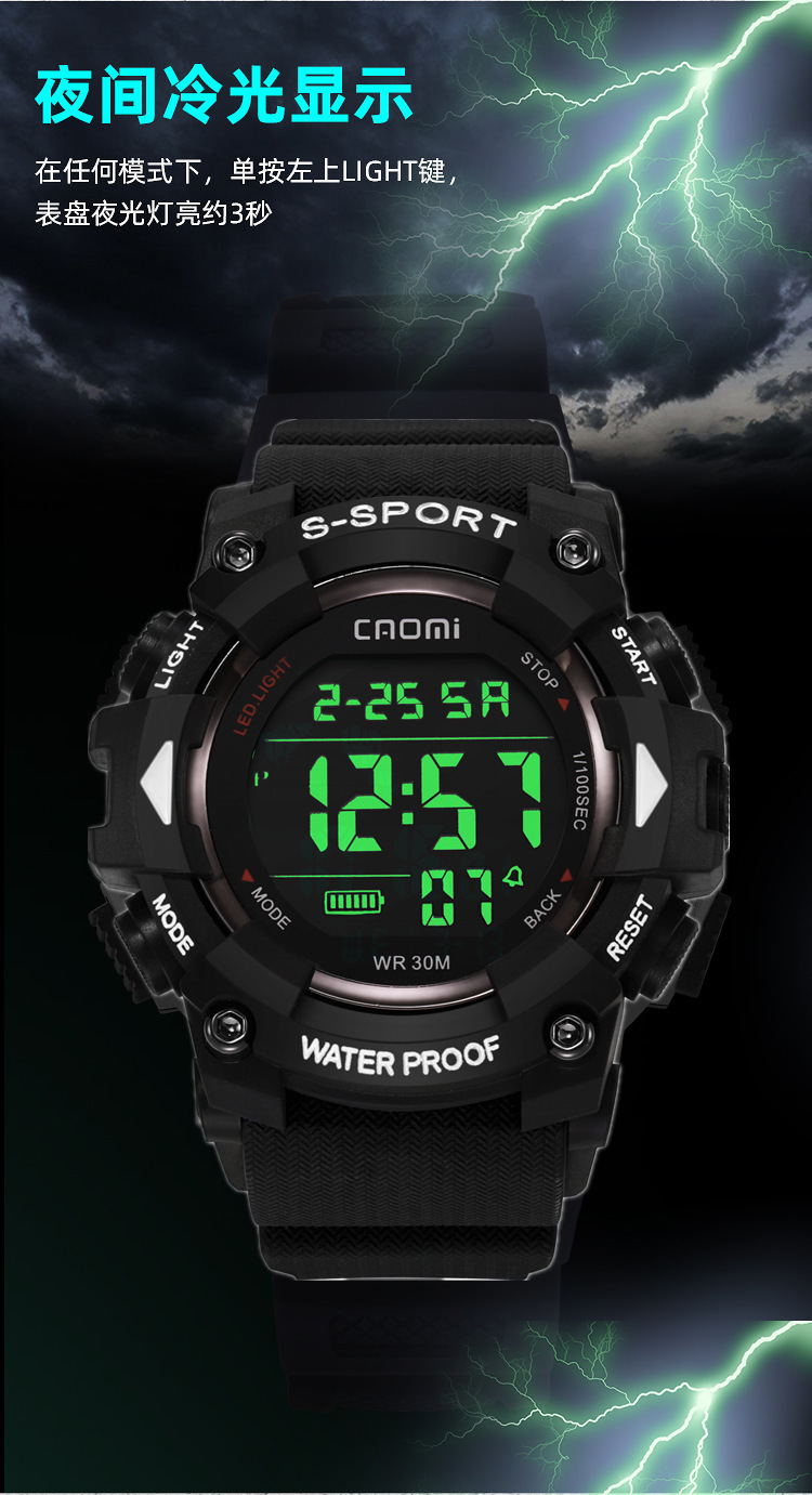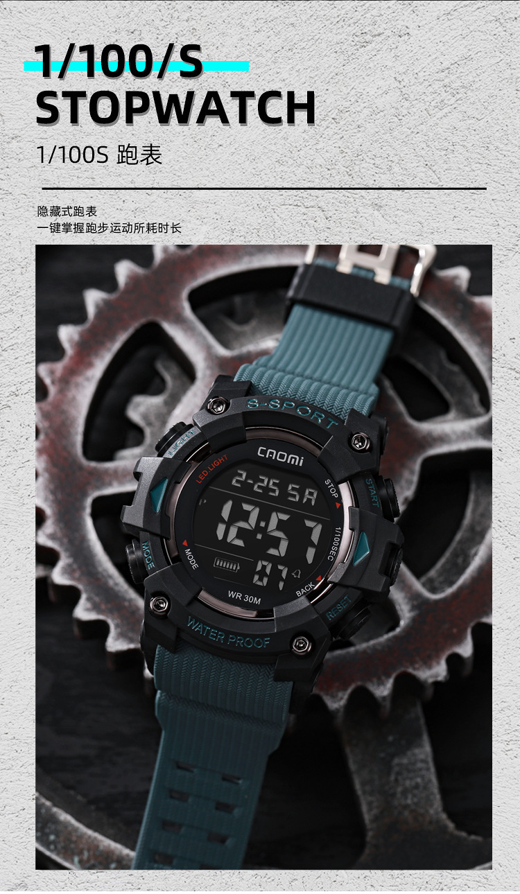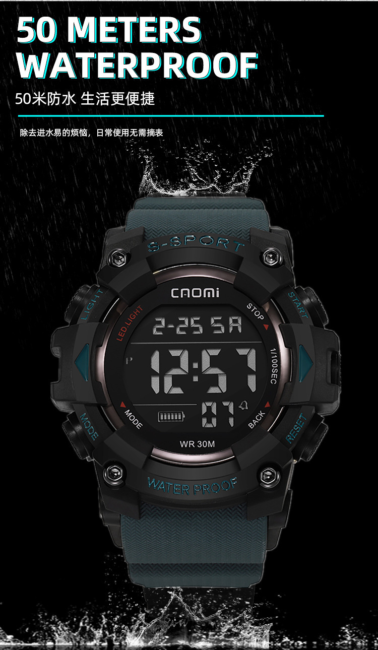 | Funciones Especiales | Nadar impermeable, cronometraje nocturno, segundos de carrera calendario semanal |