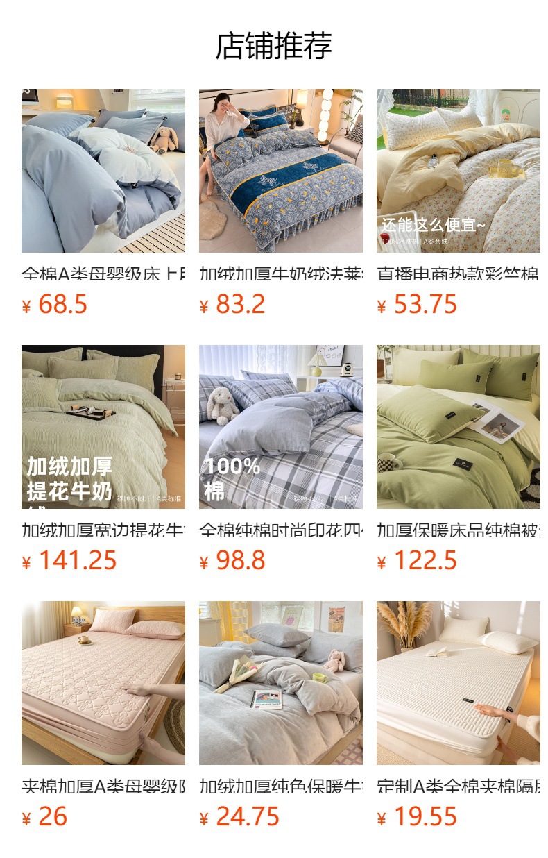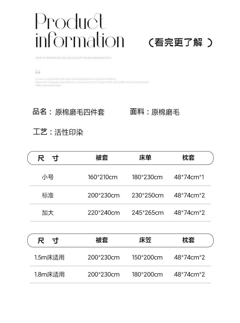 | Especificaciones de tamaño | 0,9 - 1,2 metros de sábanas de tres piezas (edredones: 160 * 210 sábanas: 180 * 230 fundas de almohada: 48 * 74 * 1), 1,5 - 1,8 metros de sábanas de cuatro piezas (edredones: 200 * 230 sábanas: 230 * 250 fundas de almohada: 48 * 74 * 2), 2,0 metros de sábanas de cuatro piezas (edredones: 220 * 240 sábanas: 245 * 265 fundas de almohada: 48 * 74 * 2), 1,5 fundas de cuatro piezas (edredones: 200 * 230 fundas de almohada: 150 * 200 fundas de almohada: 48 * 74 * 2), 1,8 fundas de edredones (edredones: 200 * 200)230 sábanas: 180 * 200 fundas de almohada: 48 * 74 * 2) |