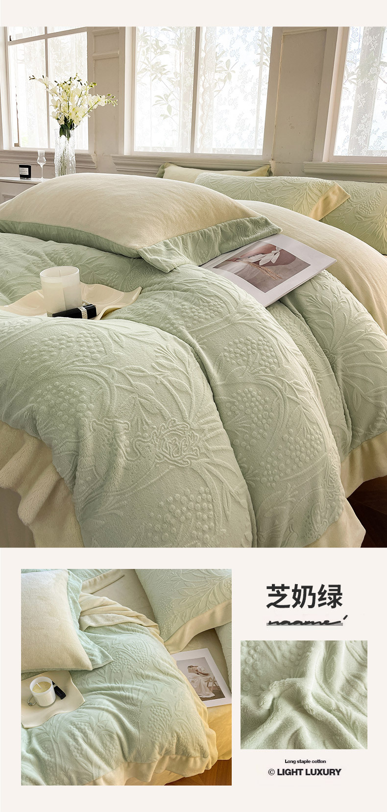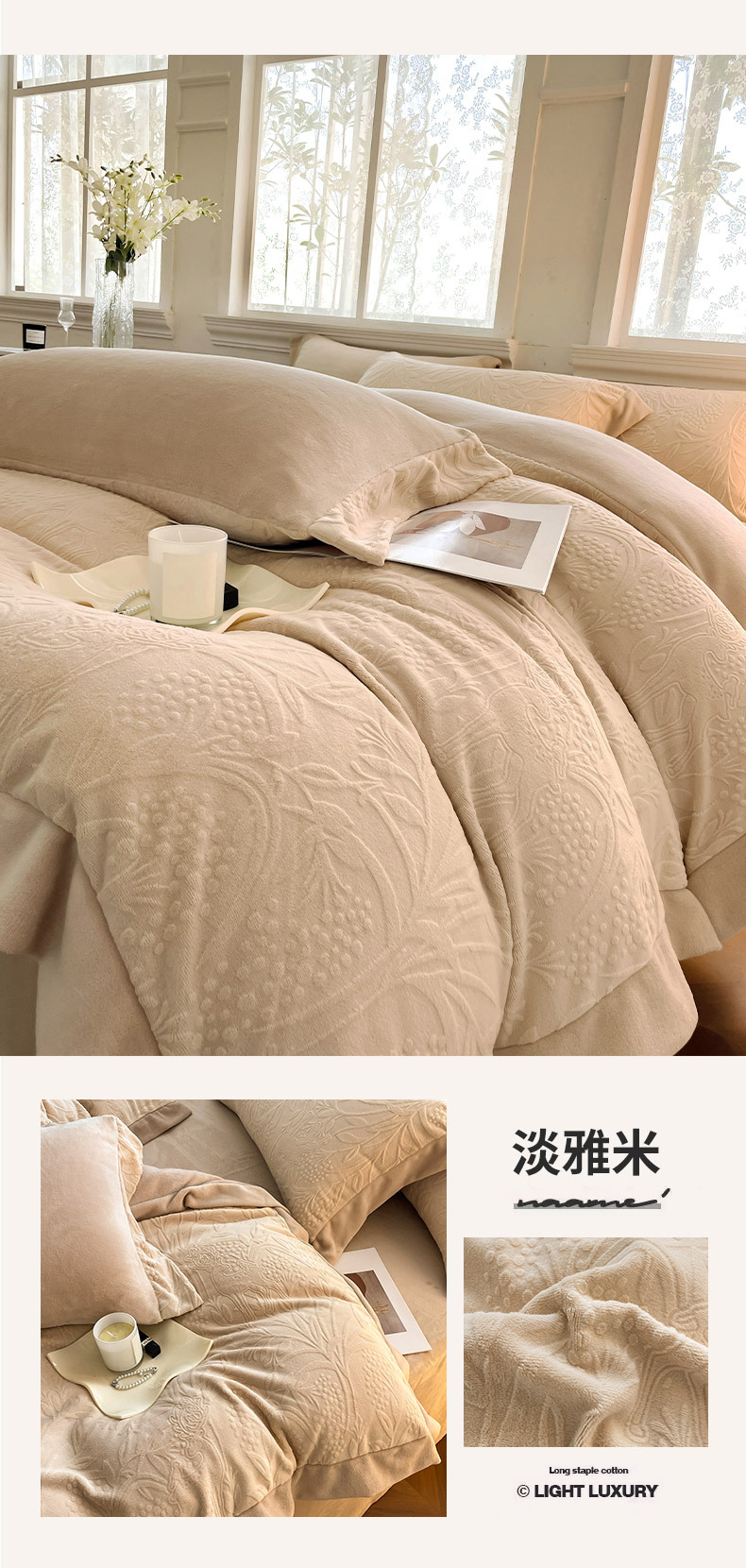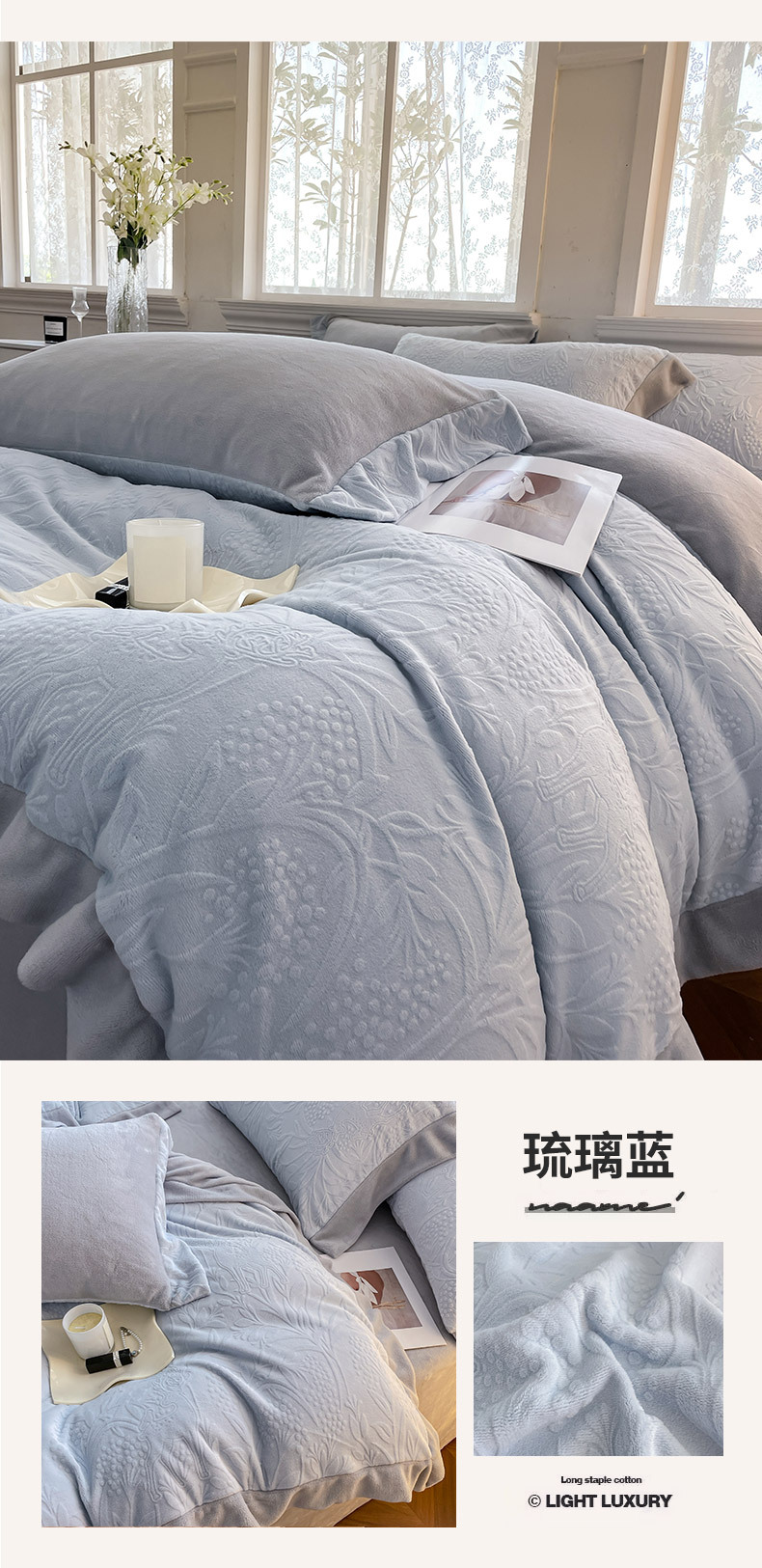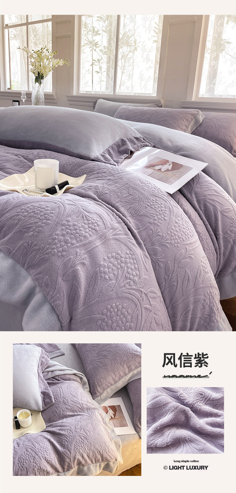 | Tipo de flor | Miluti - blanco melocotón (juego de cuatro piezas talladas con terciopelo), miluti - arroz elegante (juego de cuatro piezas talladas con terciopelo), miluti - púrpura Fengxin (juego de cuatro piezas talladas con terciopelo), miluti - azul vidriado (juego de cuatro piezas talladas con terciopelo), miluti - verde crema Zhi (juego de cuatro piezas talladas con terciopelo) |