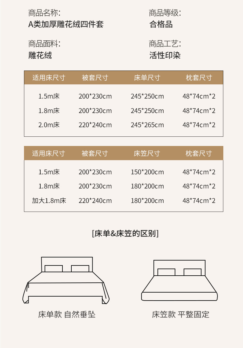 | Especificaciones de tamaño | 4 juegos de sábanas de 1,5 a 1,8 metros (200 * 230 sábanas 245 * 250 fundas de almohada 48 * 74 * 2), 4 juegos de sábanas de 2,0 metros (220 * 240 sábanas 245 * 265 fundas de almohada 48 * 74 * 2), 4 juegos de sábanas de 1,5 metros (200 * 230 fundas de cama 150% 200 fundas de almohada 48 * 74 * 2), 4 juegos de sábanas de 1,8 metros (200 * 230 fundas de cama 180 * 200 fundas de almohada 48 * 74 * 2) |