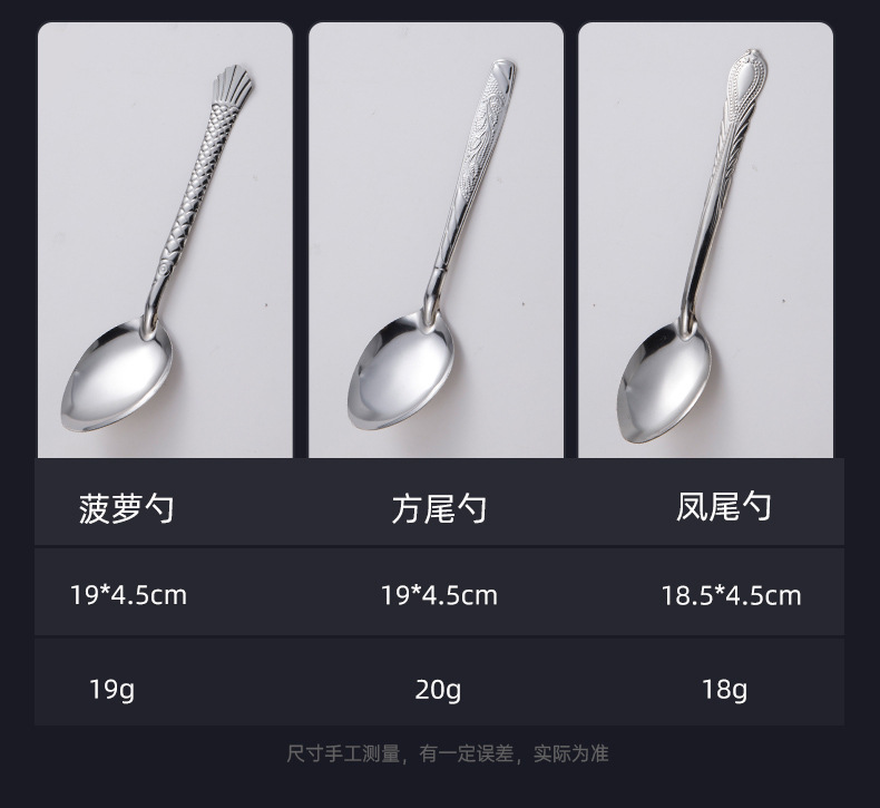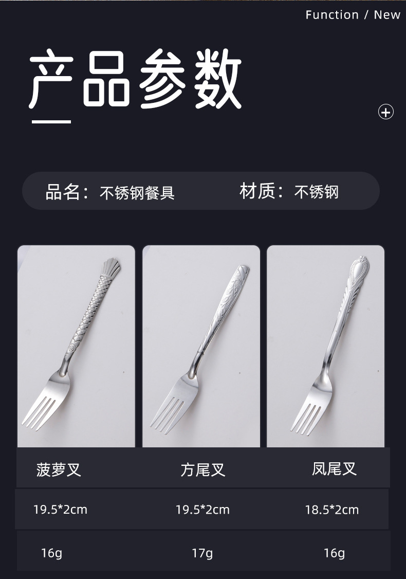 | Color | Piña tenedor,Tenedor de cola cuadrada,Phoenix tenedor cola,Cuchara de piña,Cuchara de cola cuadrada,Cuchara de cola de Phoenix |