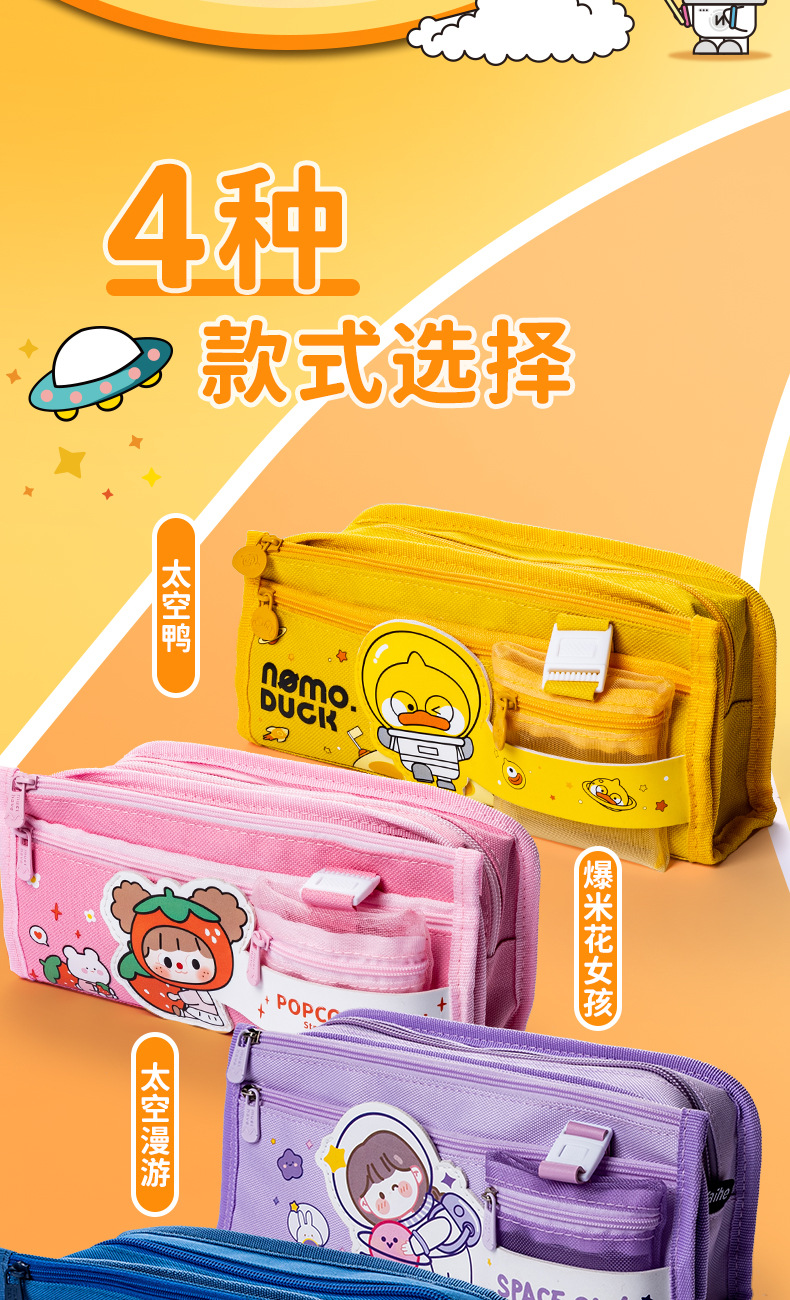 Mahe astronauta multi-capa Dora caja de lápiz de dibujos animados lindo estudiante de gran capacidad alargada bolsa de lápiz de malla al por mayor