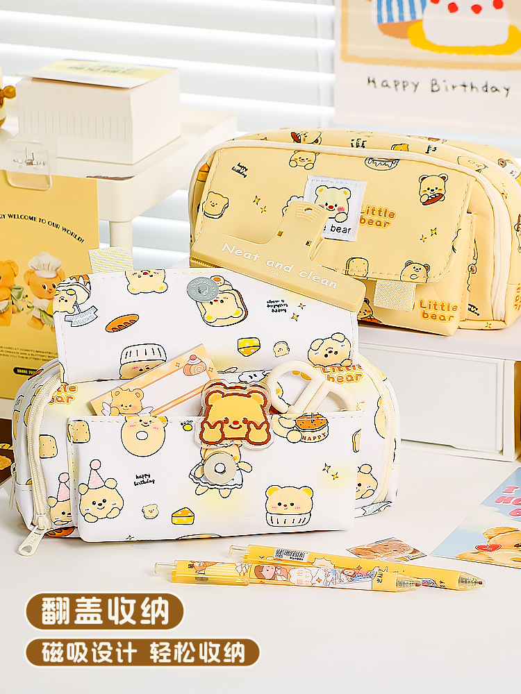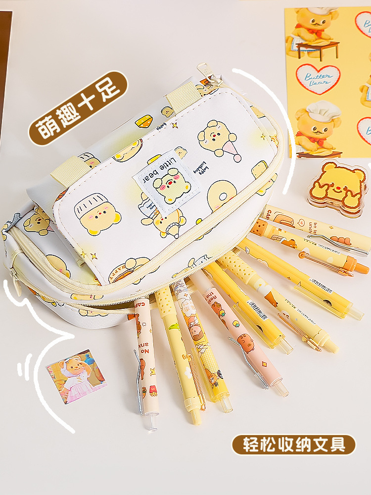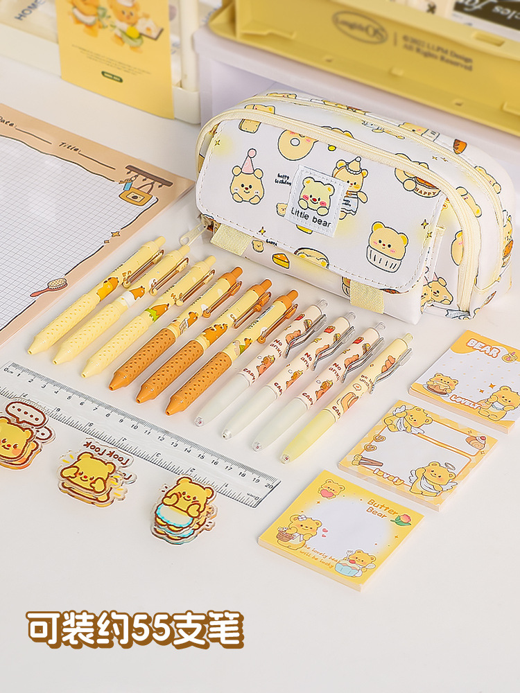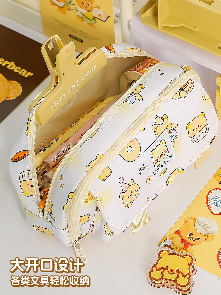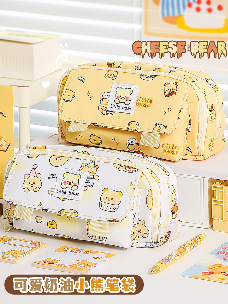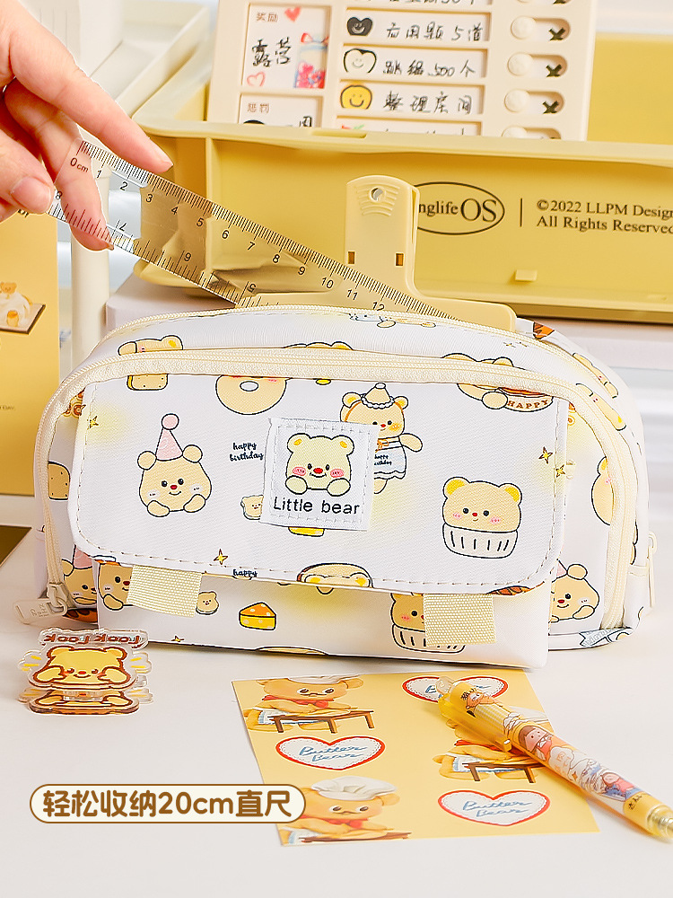 Nuevo estilo transfronterizo, caja de papelería de alto valor para estudiantes, bolsa de lápices de gran capacidad de doble apertura, bolsa de papelería simple para estudiantes de escuela primaria y secundaria