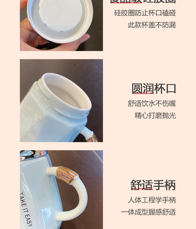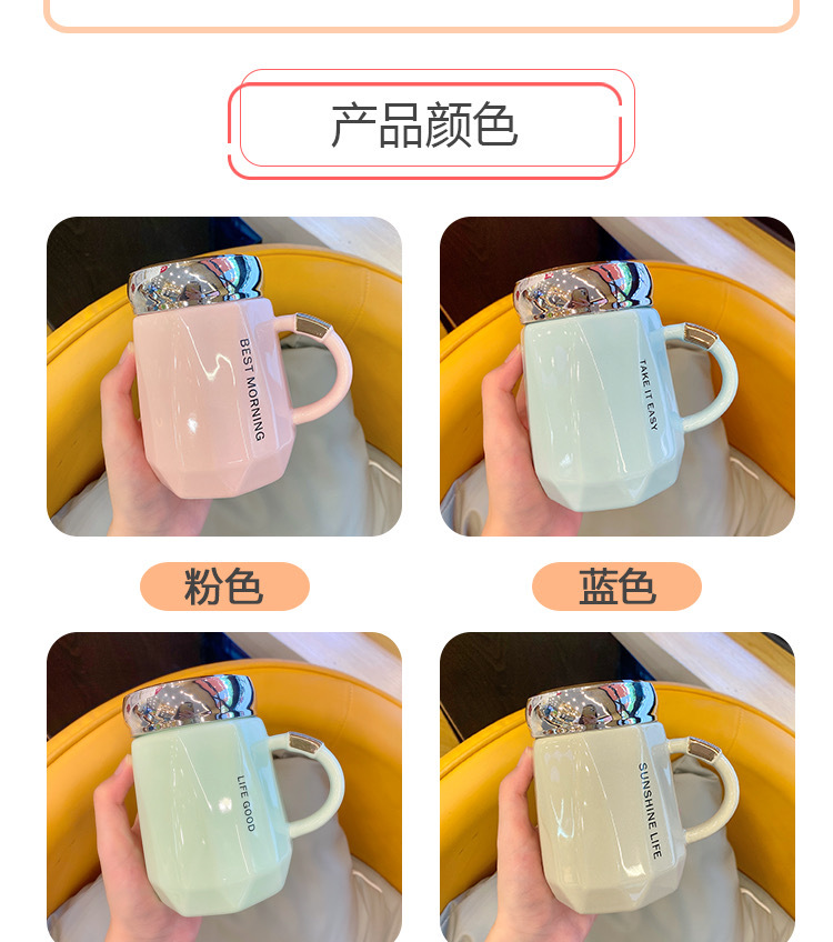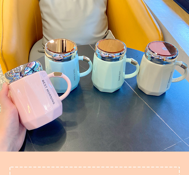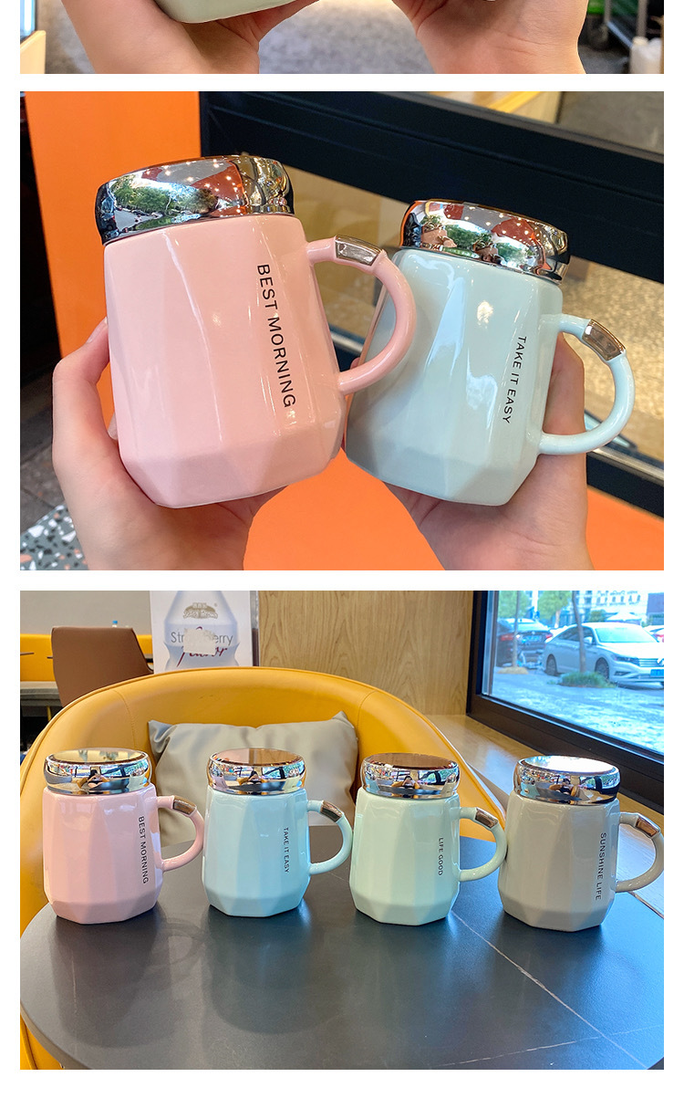Taza de cerámica para parejas de alta gama - Con tapa - Para hogar y oficina - Gran capacidad y diseño Instagrameable - En caja de regalo