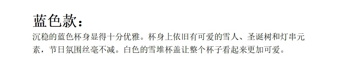 | Color | Copa de Navidad - rojo, Copa de Navidad - verde, Copa de Navidad - azul, Copa de Navidad - Copa roja + muñeca, Copa de Navidad - Copa verde + muñeca, Copa de Navidad - Copa azul + muñeca |
