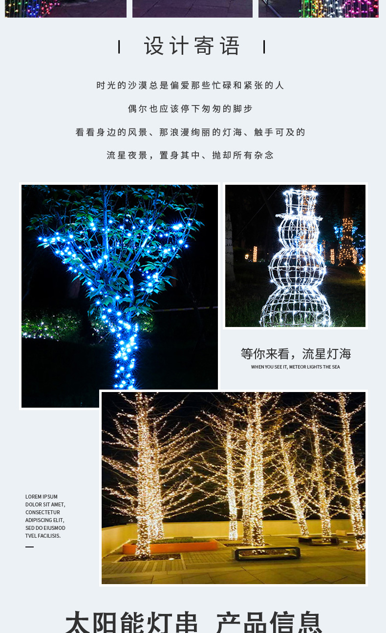 | Especificaciones | 3,5 metros 10 luces solares dos funciones,5 metros 20 luces solares dos funciones,6,5 metros 30 luz solar dos funciones,6,5 metros 30 luces solares ocho funciones,7 metros 50 luces solares ocho funciones,9,5 metros 50 luces solares ocho funciones,11 metros 60 luces solares ocho funciones,12 metros 100 luz solar ocho funciones,22 metros 200 luces solares ocho funciones,32 metros 300 luz solar ocho funciones,6,5 metros 30 luces solares ocho funciones con tablero pequeño de control remoto,7 metros 50 luces solares ocho funciones con tablero pequeño de control remoto,9,5 m 50 lámparas solares ocho funciones con tablero pequeño de control remoto,11 metros 60 luces solares ocho funciones con tablero pequeño de control remoto,12 metros 100 luces energía solar ocho funciones con control remoto tablero pequeño,22 metros 200 luces energía solar ocho modelos de actualización de función con control remoto con función de carga usb,32 metros 300 luz solar ocho modelos de actualización de función con control remoto con función de carga usb,52 metros 400 luz solar ocho modelos de actualización de función con control remoto con función de carga usb,102 metros 800 luz solar ocho modelos de actualización de función con control remoto con función de carga usb,102 metros 1000 luz solar ocho modelos de actualización de función con control remoto con función de carga usb,102 m 2000 luz control remoto energía solar USB placa de carga ampliada,202 m 2000 luz control remoto energía solar USB placa de carga ampliada,12 m 100 luz mejorada de control remoto enchufable solar [de doble uso],22 m 200 luces mejoradas de control remoto enchufable solar [de doble uso],32 metros 200 luces mejoradas de control remoto enchufable solar [de doble uso],32 m 300 luz mejorada de control remoto enchufable solar [de doble uso],52 m 400 luz mejorada de control remoto enchufable solar [de doble uso],Inserto solar de control remoto mejorado de 52 metros y 500 luces [de doble uso],52 metros 1000 luces mejoradas de control remoto enchufable solar [de doble uso],102 metros 800 luces mejoradas de control remoto enchufable solar [de doble uso],102 metros 1000 luces mejoradas de control remoto enchufable solar [de doble uso],10 m 100 lámpara modelo enchufable de bajo voltaje con controlador,20 m 200 lámpara enchufable de bajo voltaje con controlador,32 m 300 lámpara enchufable de bajo voltaje con controlador,32 m 200 lámpara enchufable de bajo voltaje con controlador,52 m 400 lámpara modelo enchufable de bajo voltaje con controlador,52 m 500 lámpara modelo enchufable de bajo voltaje con controlador,52 m 1000 lámpara modelo enchufable de bajo voltaje con controlador,102 m 800 lámpara enchufable de bajo voltaje con controlador,102 m 1000 lámpara modelo enchufable de bajo voltaje con controlador,102 m 2000 lámpara enchufable de bajo voltaje con controlador,102 m 3000 lámpara modelo enchufable de bajo voltaje con controlador,202m 2000 lámpara enchufable de bajo voltaje con controlador |