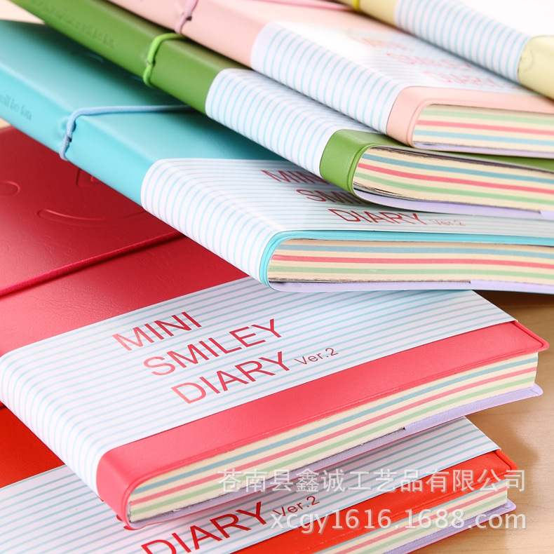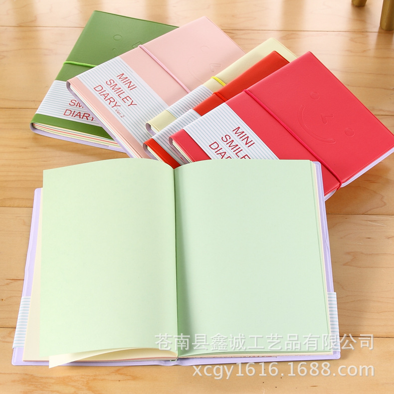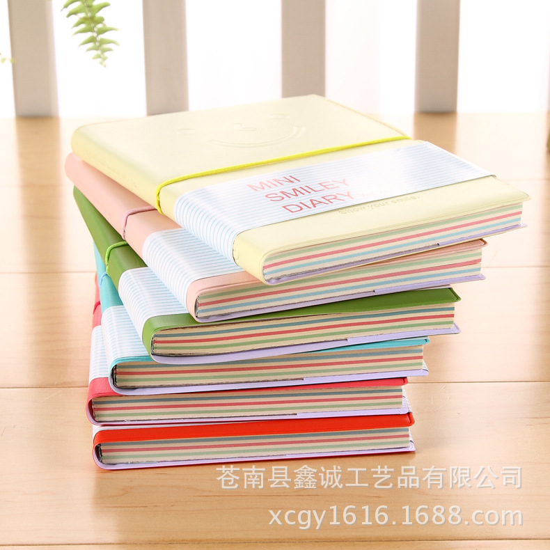 批发仿皮糖果色笑脸小笔记本 微笑表情皮套记事本 可爱随身日记本
