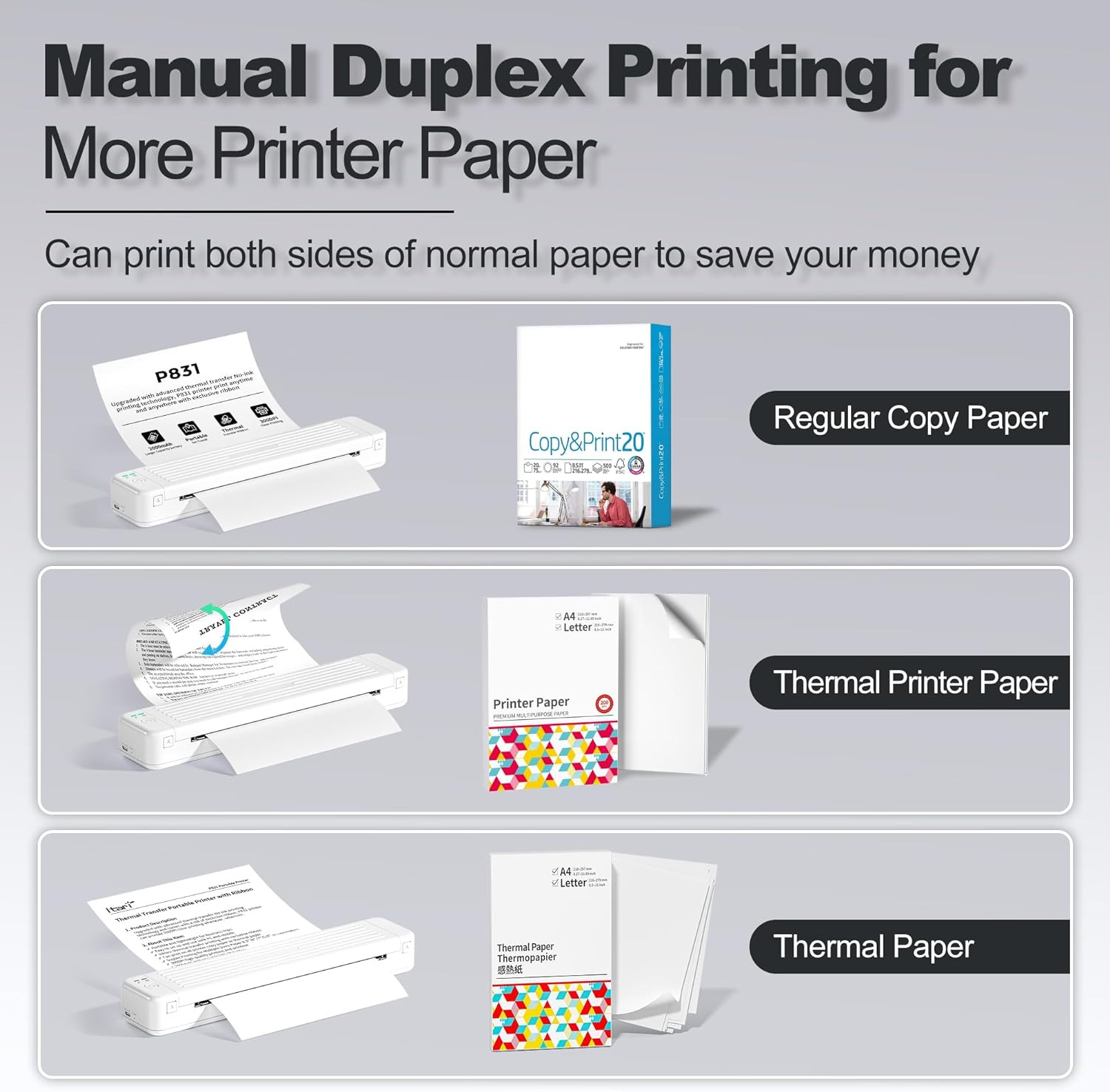 | Colores | P831 cinta negra 215mm * 14.5m-2 piezas,200 hojas de papel de copia de doble cara ordinario A4 para impresora de transferencia de calor P831,Carta de papel de copia de doble cara ordinaria 200 hojas para impresora de transferencia de calor P831 |