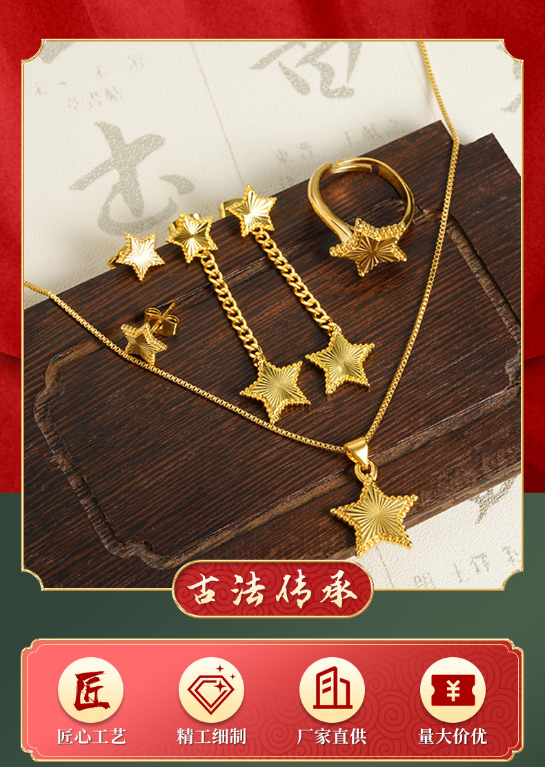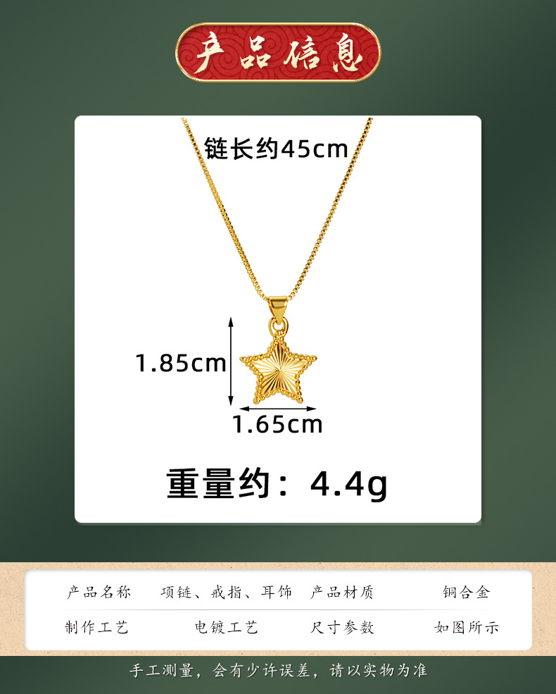 | Color | Anillo de estrella j2349, pendiente de estrella e2389, clavo de estrella e2390, collar de estrella x2684 |
