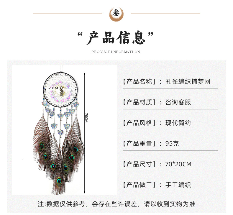 | Especificaciones | Peacock pelo atrapasueños,Pavo real pelo Dream catcher con luz |