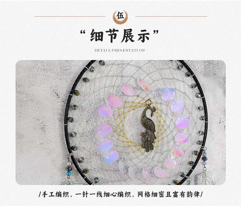 | Artículo No. | 0922 8 Campana de pavo real atrapasueños |