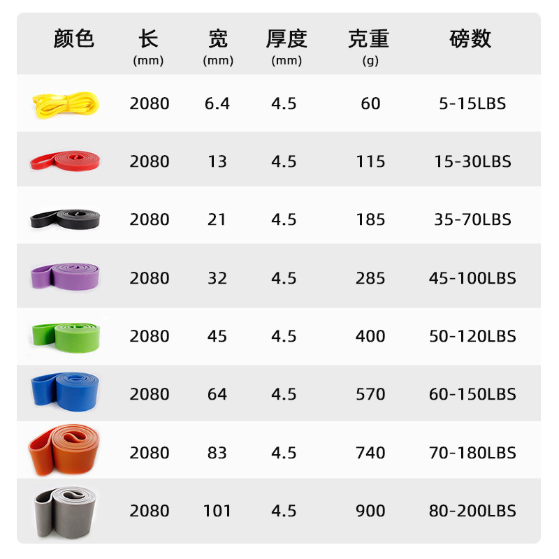 | Colores | Correa de resistencia 2080*4.5*6.4 Amarillo,Cinturón de resistencia 2080*4.5*13 rojo,Cinturón de resistencia 2080*4.5*21 negro,Banda de resistencia 2080*4.5*32 púrpura,Cinturón de resistencia 2080*4.5*45 verde,Cinturón de resistencia 2080*4.5*64 azul,Banda de resistencia 2080*4.5*83 naranja,Cinturón de resistencia 2080*4.5*102 gris,Juego de hebilla de puerta de mango,Bolsa de almacenamiento |