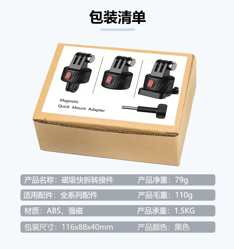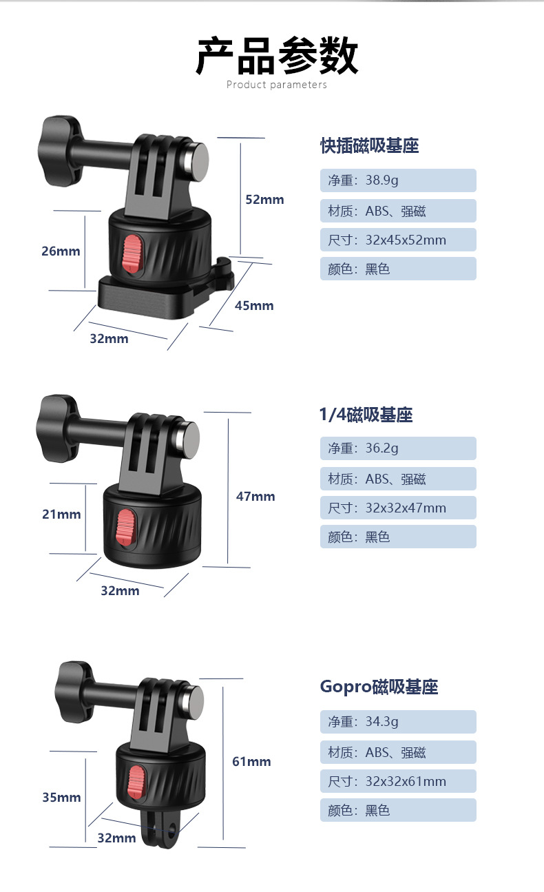 | Colores | Juego de adaptadores magnéticos,Adaptador magnético 1/4 base,Adaptador magnético base gopro,Base de liberación rápida de adaptador magnético |
