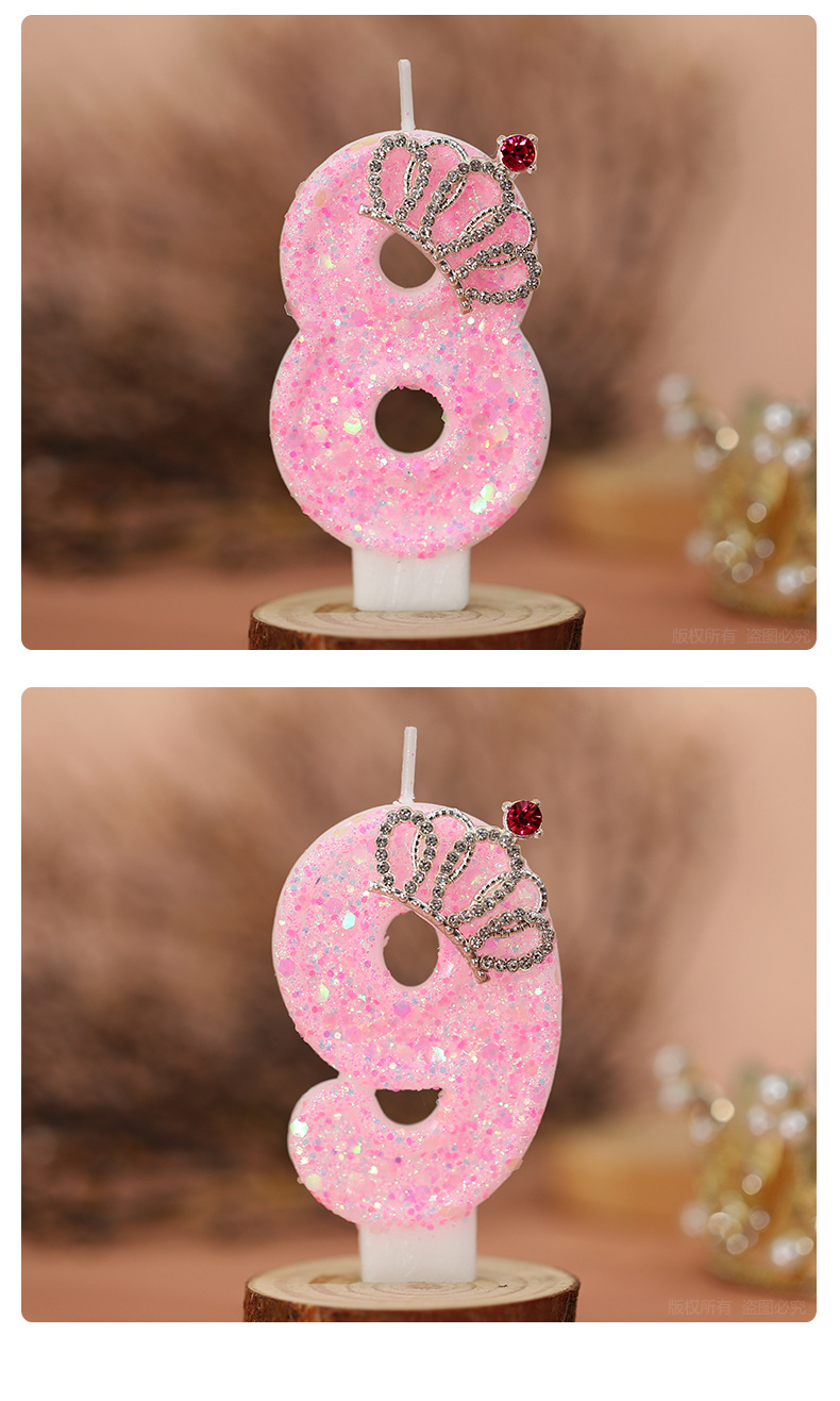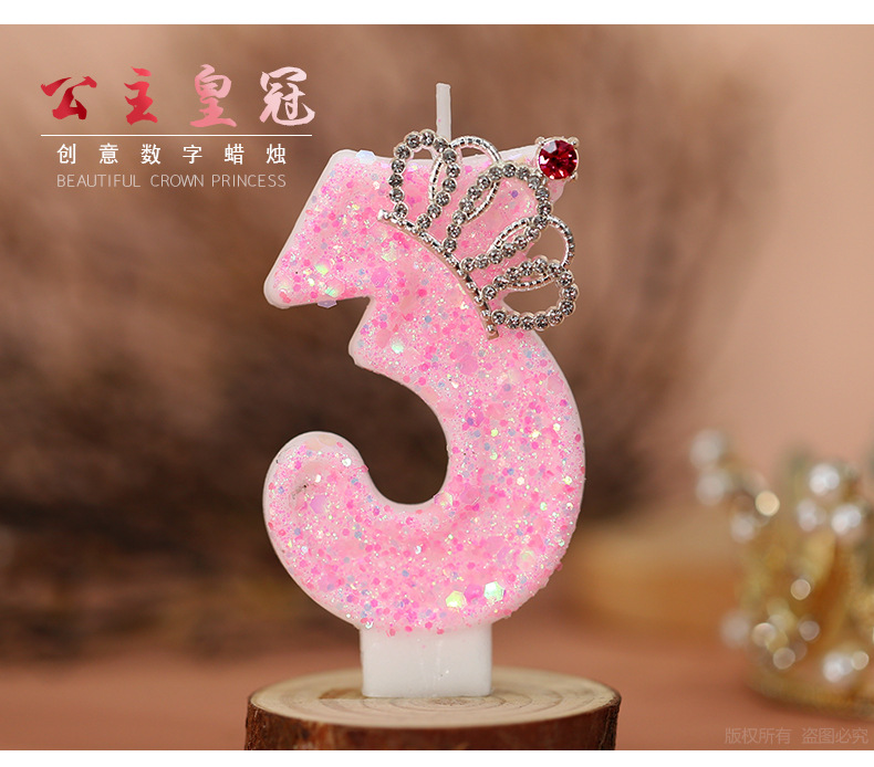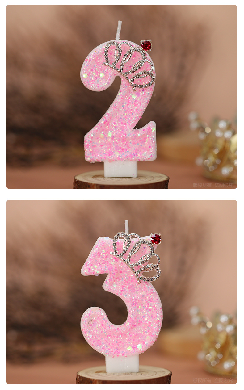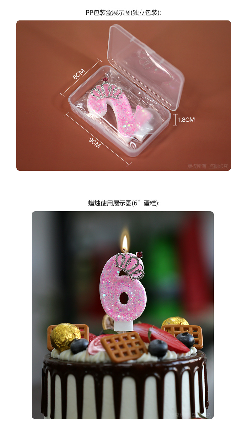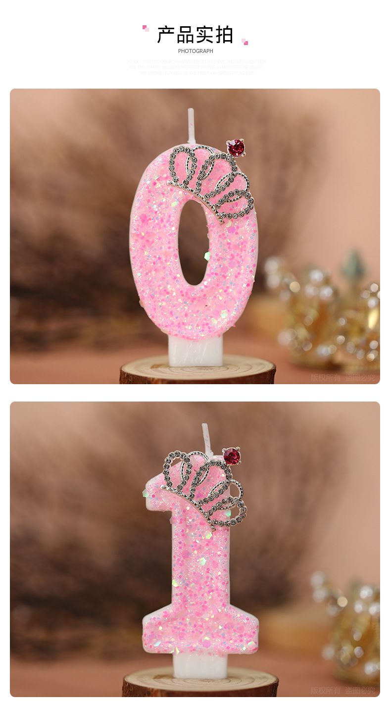 一、品名:粉色公主皇冠0-9创意数字生日蜡烛。