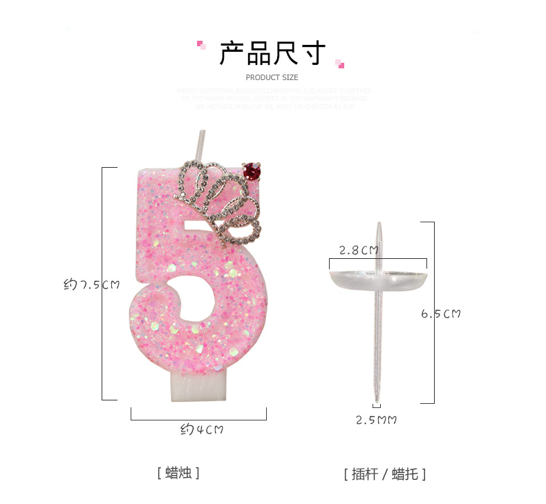 四、尺寸:蜡烛宽度约4CM*高约7.5CM*厚约1.5CM(各数字形状差异略有不同)。