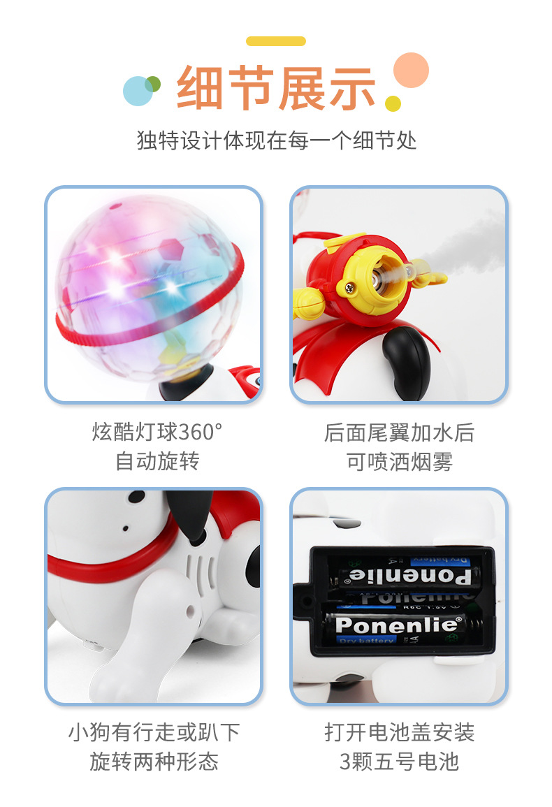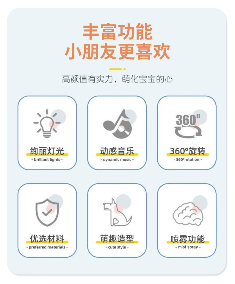 | Características | Función de pulverización independiente rastreo 360 ° música ligera giratoria |