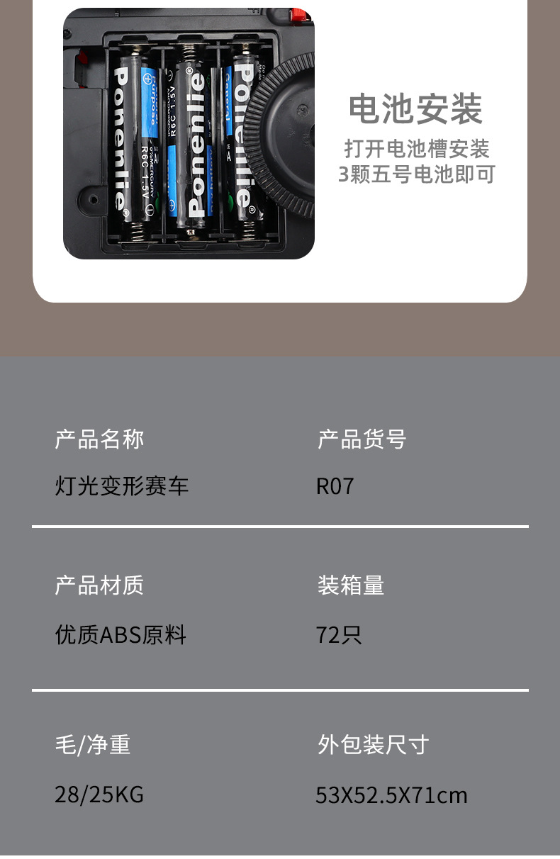 | Características | Conducción universal, luces coloridas, rotación de 360 grados, deformación automática |