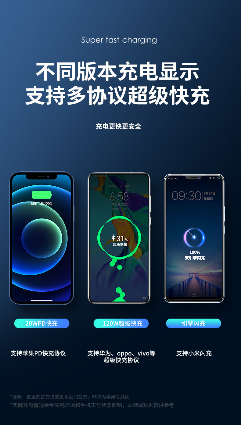 | Capacidad de energía | 20000 mAh [120W carga súper rápida],30000 mAh [120W carga súper rápida],40000 mAh [120W carga súper rápida],50000 mAh [120W carga súper rápida] |