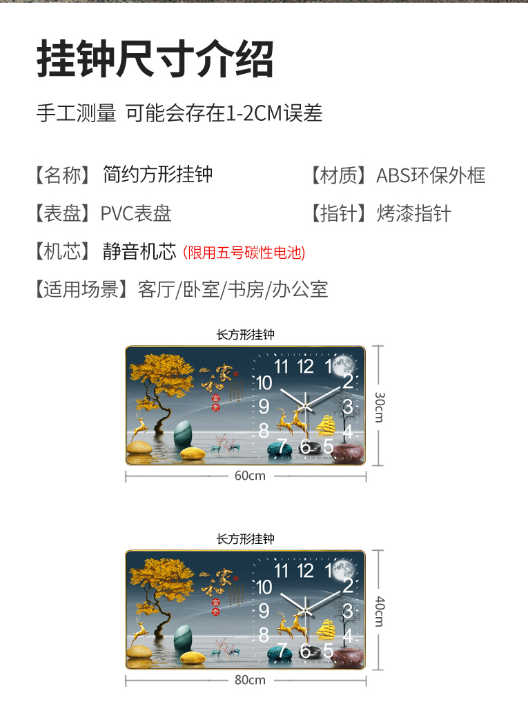 | Número de artículo | Reloj de pared horizontal rectangular |