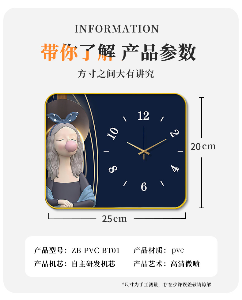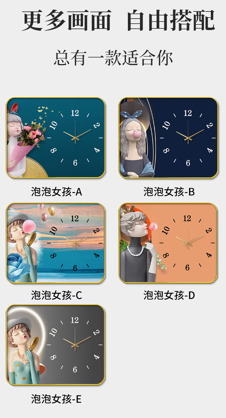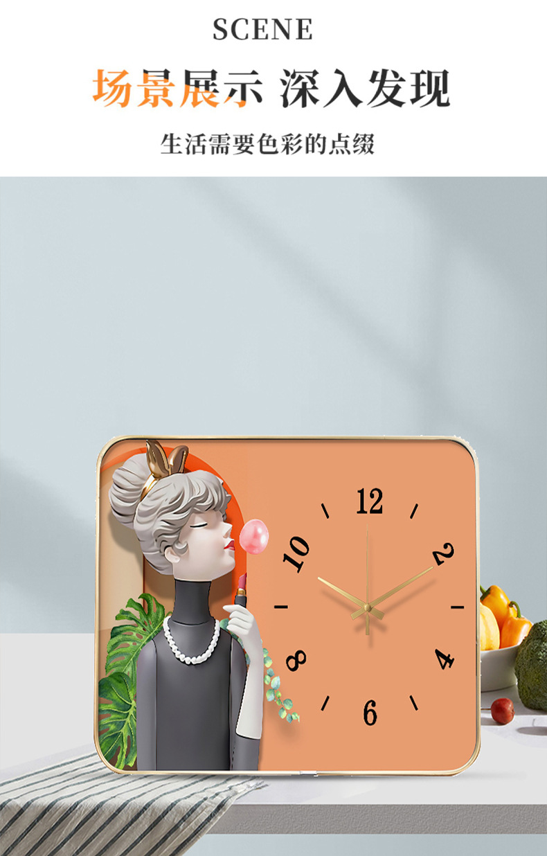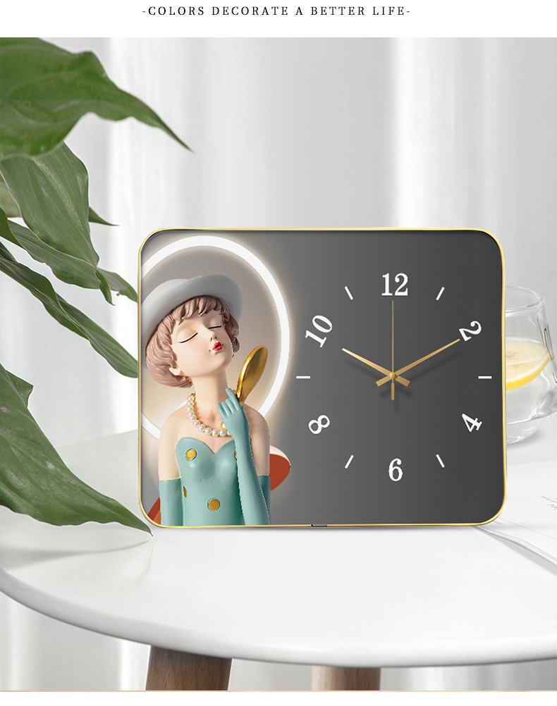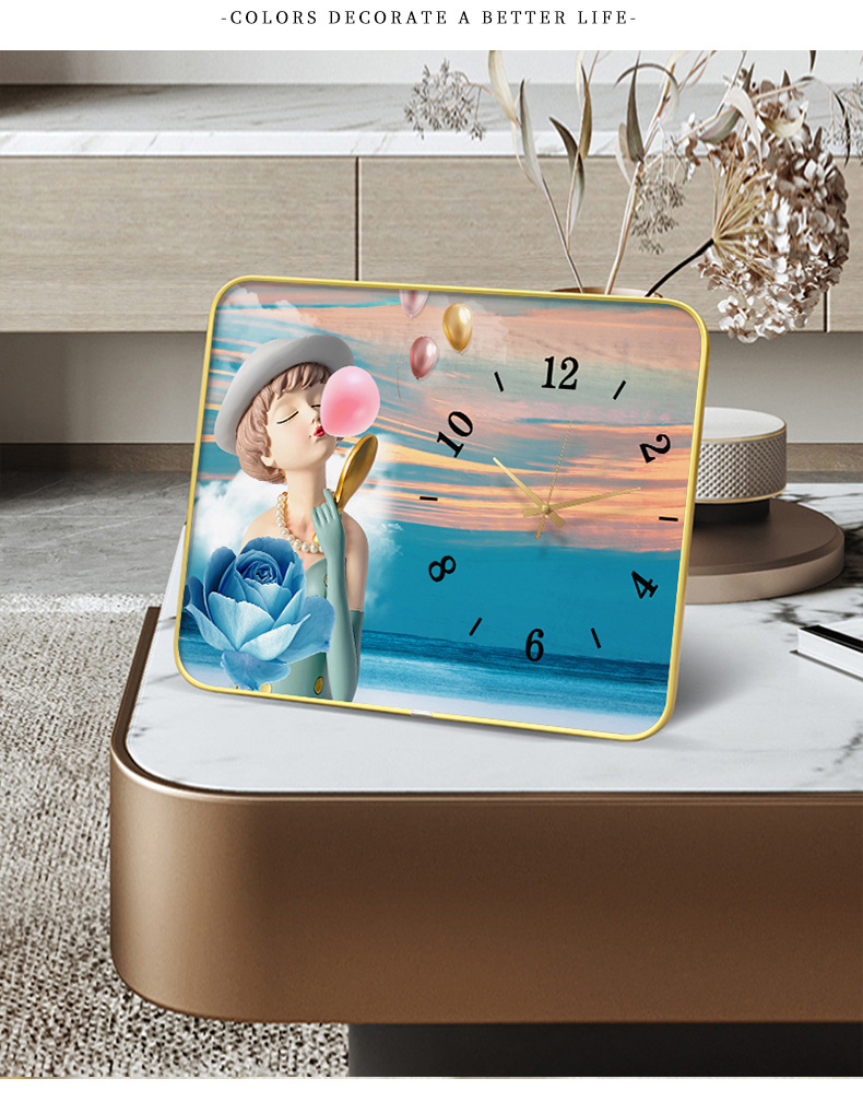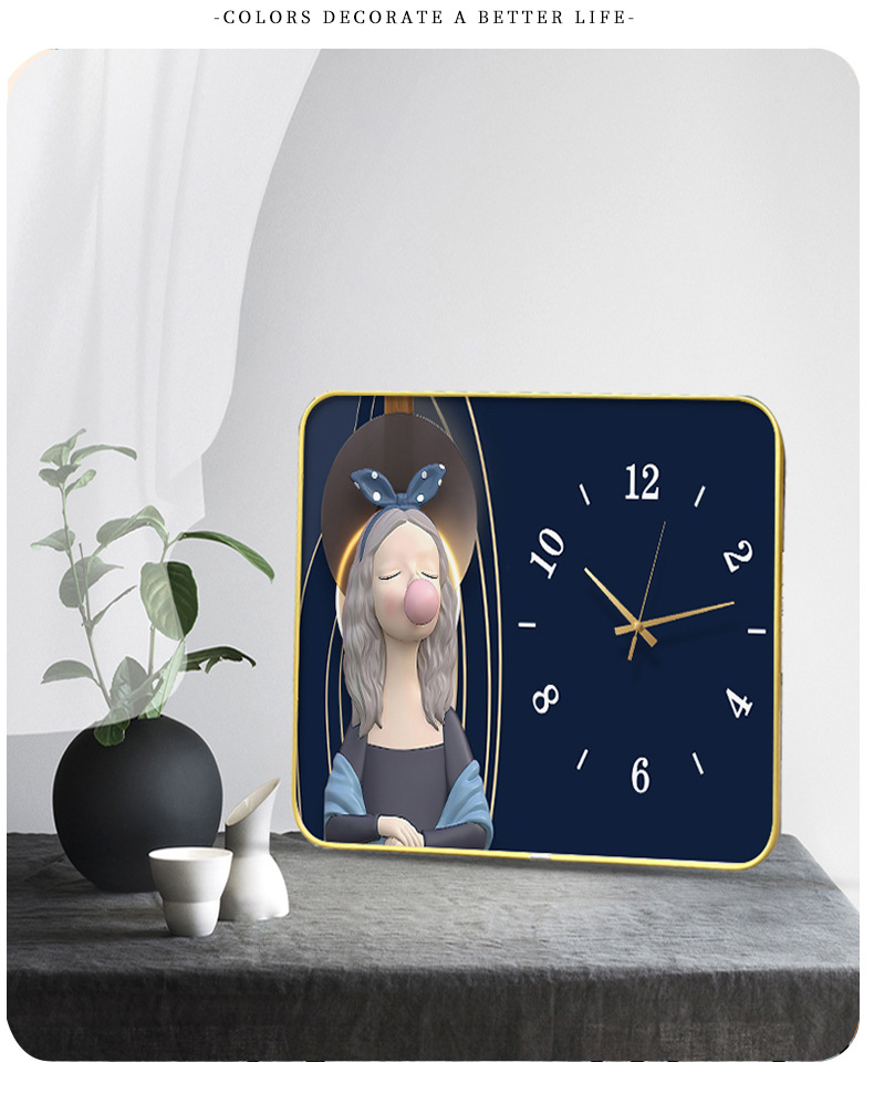 Internet celebridad reloj de escritorio decoración pintura con reloj Reloj de pared creativo moda luz lujo mudo reloj
