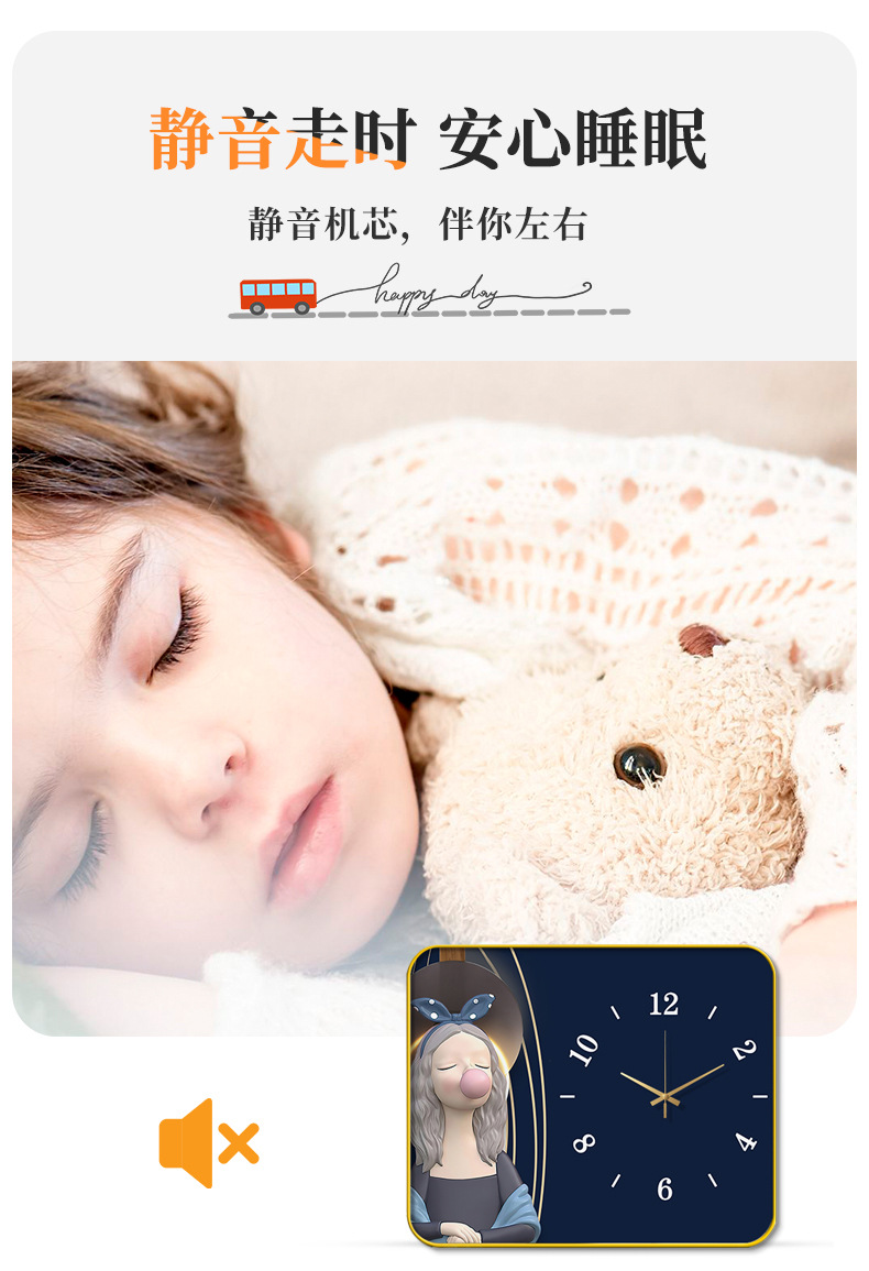 Nuevos lindos dibujos animados reloj creativo de alto valor de la luz nocturna despertador silencioso adornos de cabecera del dormitorio