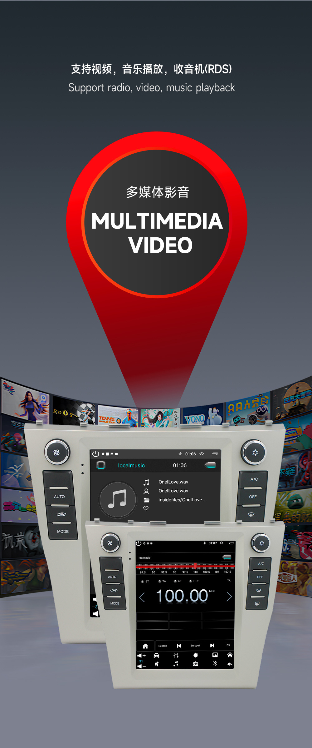Aplicable a 06-11 Toyota Camry coche Android Navigator todo en uno WIFI pantalla vertical Camry