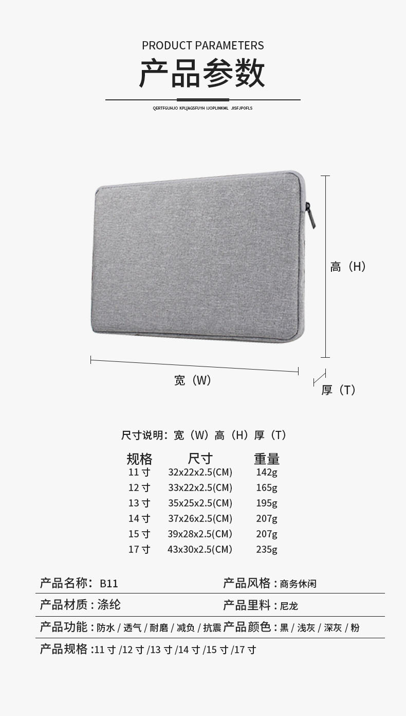 | Modelo aplicable | 11-pulgadas 32*22*1,5 cm,12 pulgadas 33x22x2,5 (cm),13 pulgadas 35x25x2,5 (cm),14 pulgadas 37x26x2,5 (CM),15 pulgadas 39x28x2,5 (cm),17 pulgadas 43x30x2,5 (CM) |
