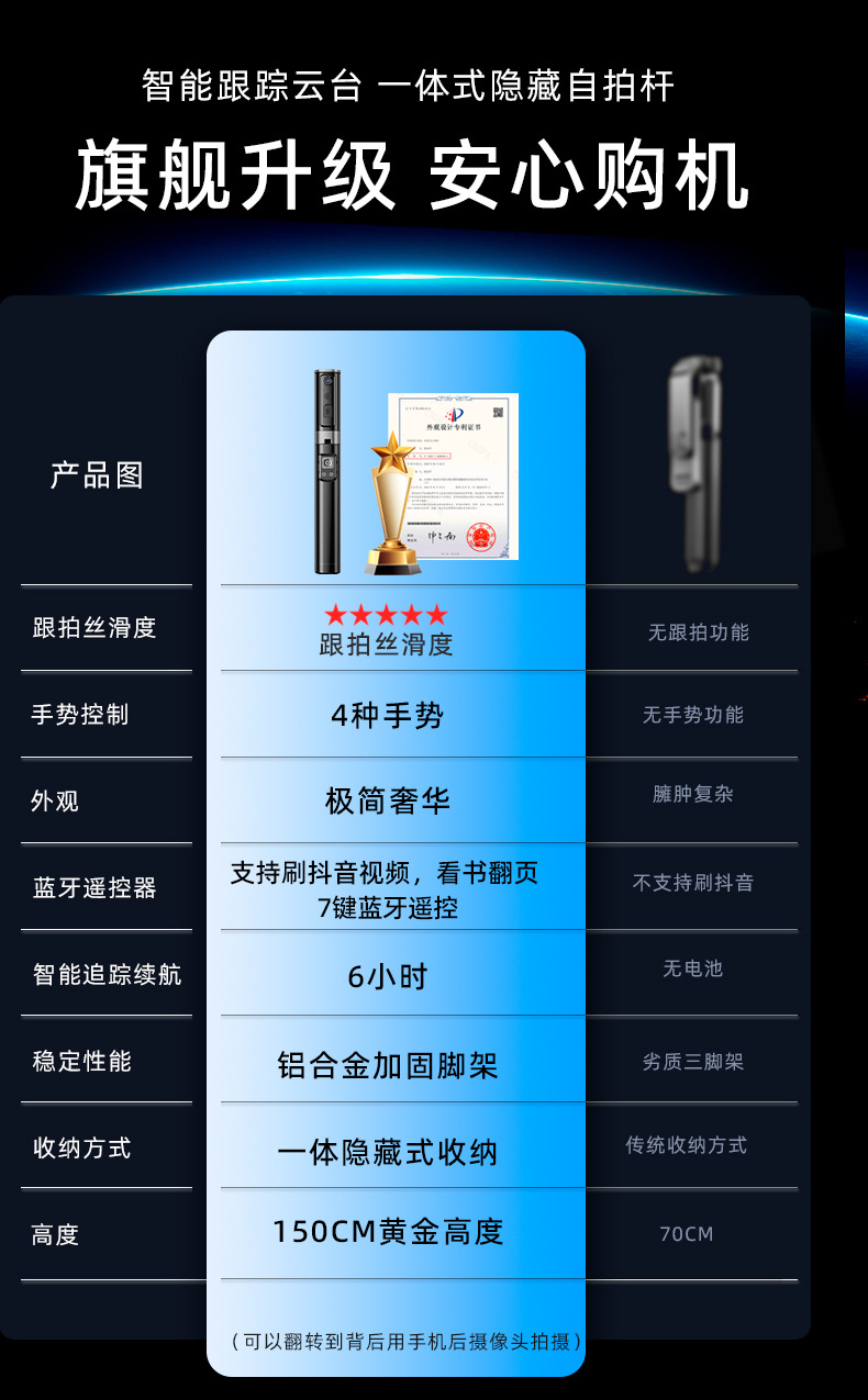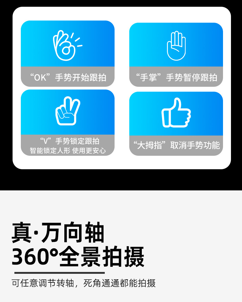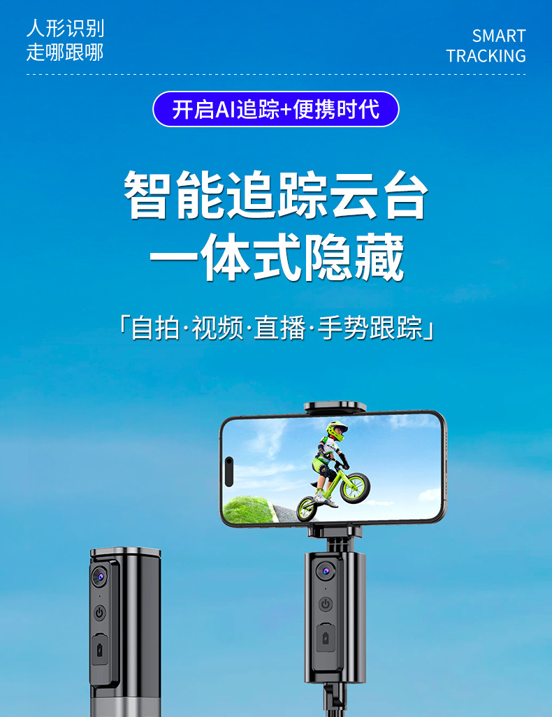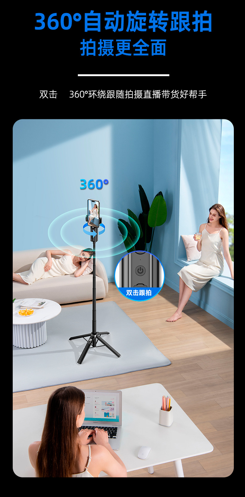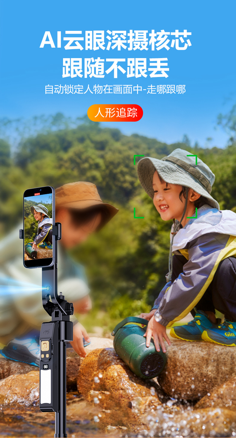 包装清单:电源线、说明书、跟拍主机、蓝牙遥控器