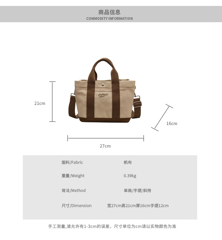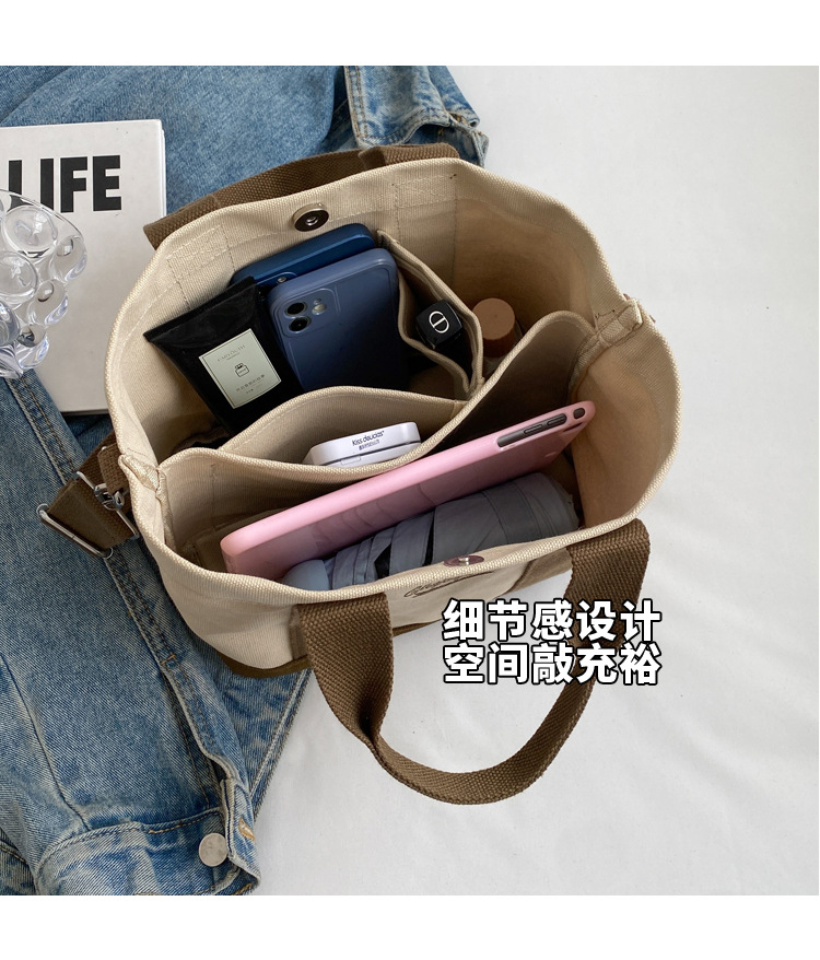 Bolso de hombro para mujer de nicho nuevo para otoño 2023, estilo coreano de internet, bolso de lona casual de mano, bandolera versátil para estudiantes