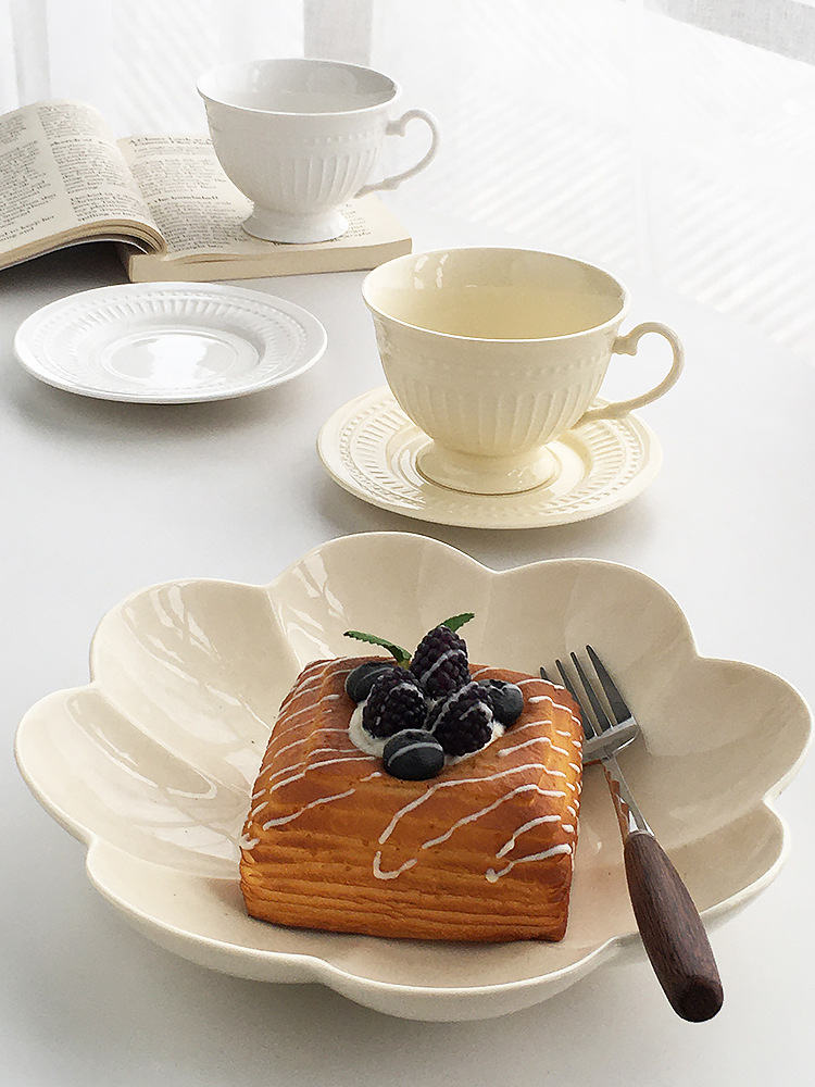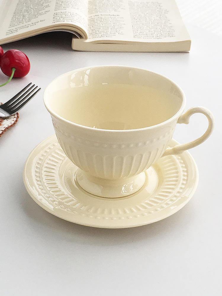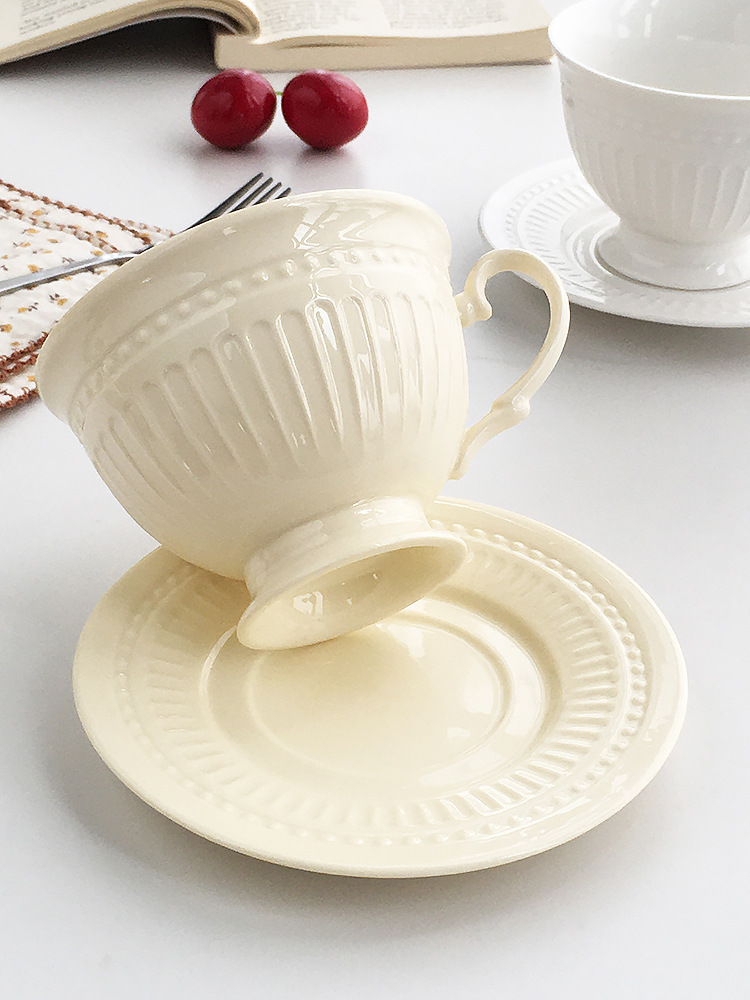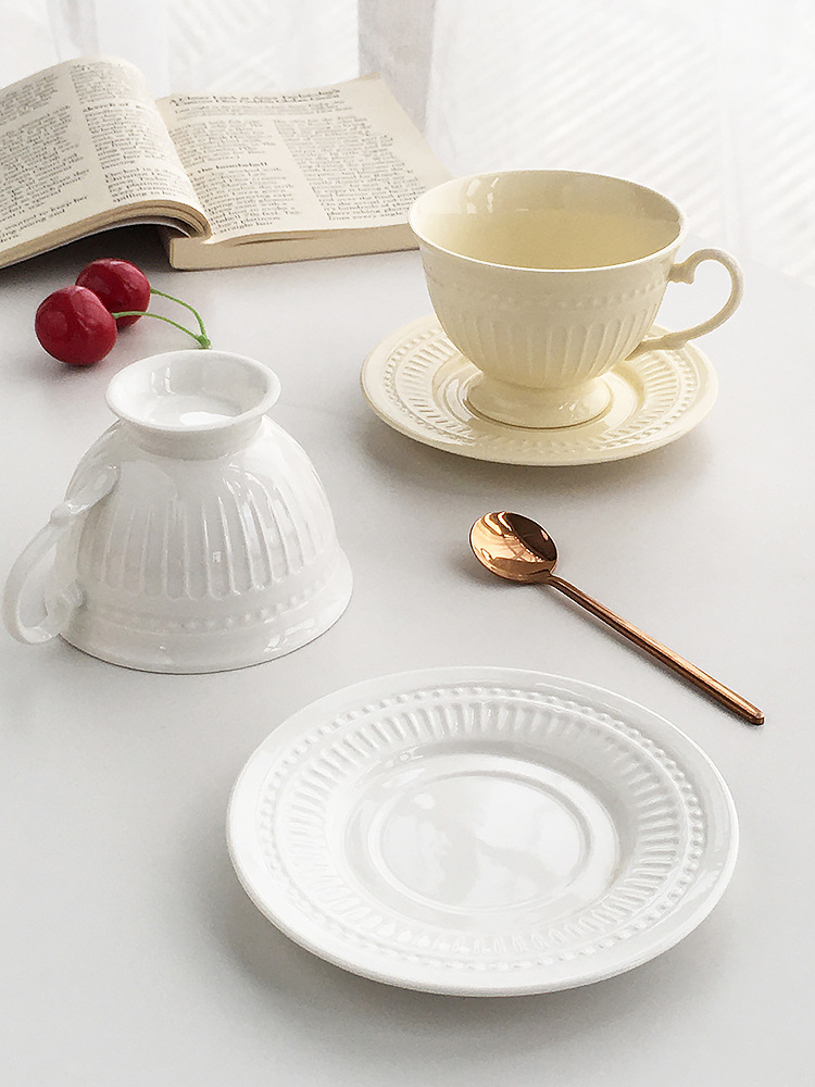 Juego de tazas y platillos de café retro francés, esmalte de horno, taza de té de la tarde de estilo nórdico, taza de té negro de diseño, taza de agua de alta gama