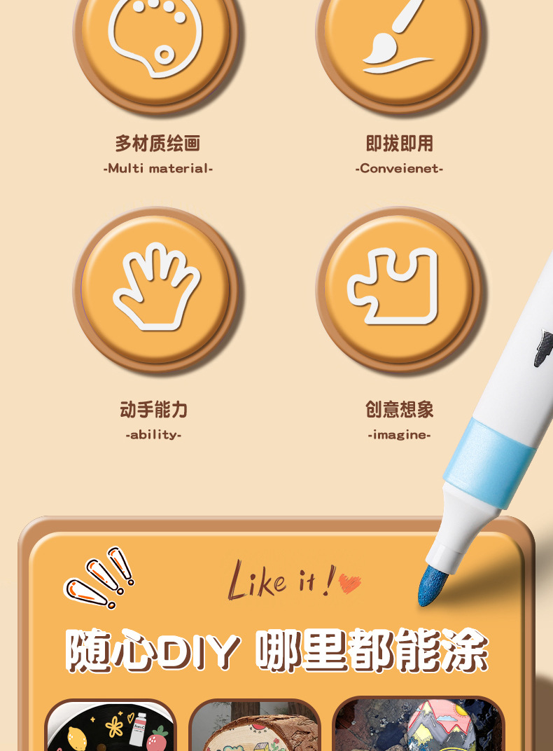 Guangna 8102 lápiz de acrílico líquido directo, papel impermeable, pincel de graffiti pintado a mano DIY, pintura de arte de color plegable
