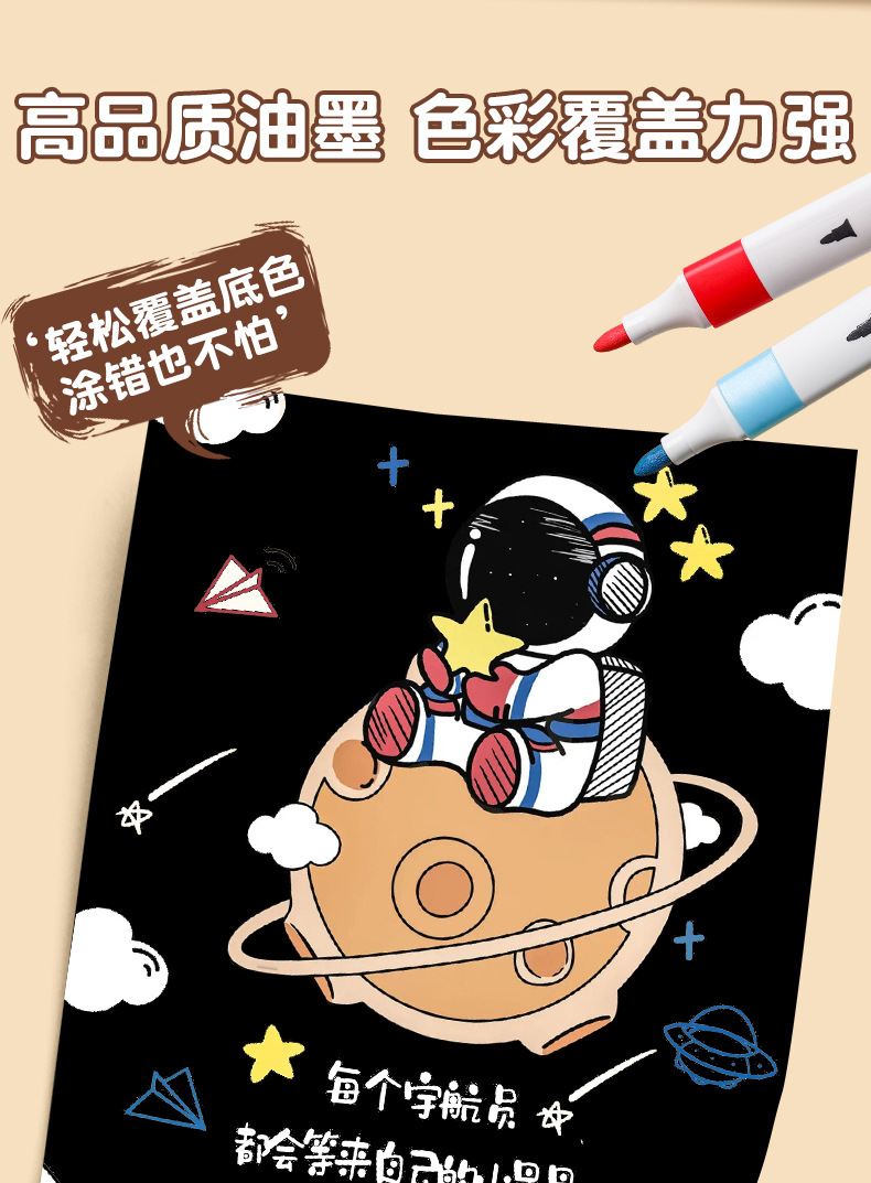 Marcador de dos cabezas para arte, color impenetrable, impermeable y no se desvanece, pincel para estudiantes, bolígrafo de color aceitoso para estudiantes de escuela primaria
