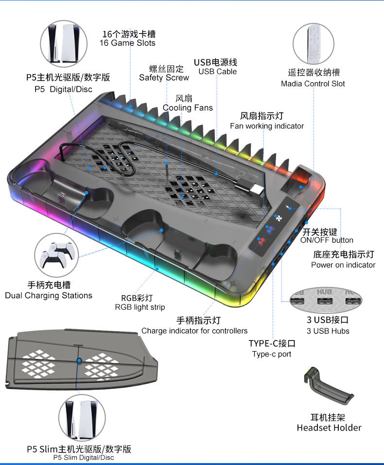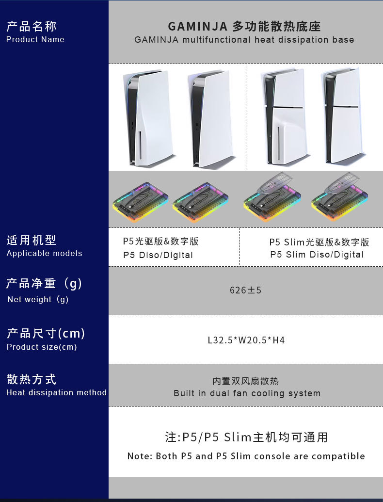 | Ámbito de aplicación | Base de enfriamiento del host slim PS5 Base de carga del mango PS5 |