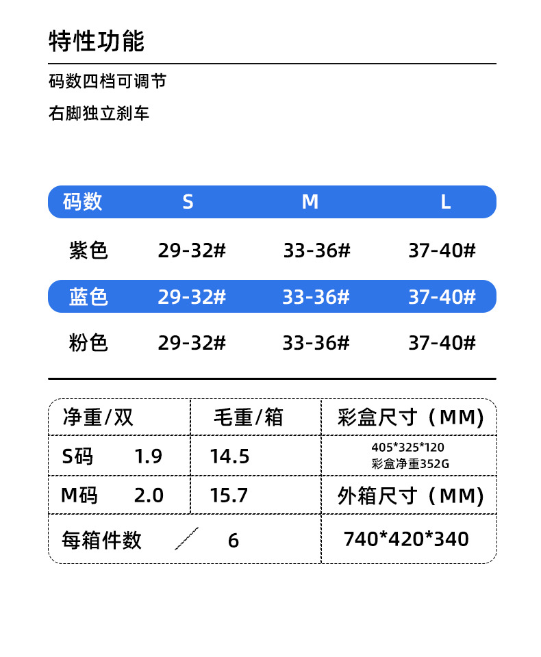 | Tamaño | Código S (29-32),Código M (33-36),Código L (37-40) |