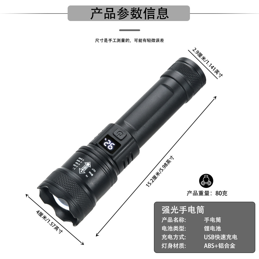 | Color | Lintera de zoom de visualización digital de alta luz negra |