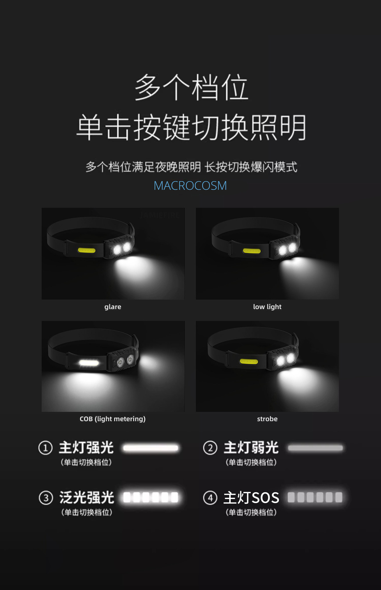 | Color | T211 - Lámpara de cabeza de luz intensa de múltiples fuentes de luz |