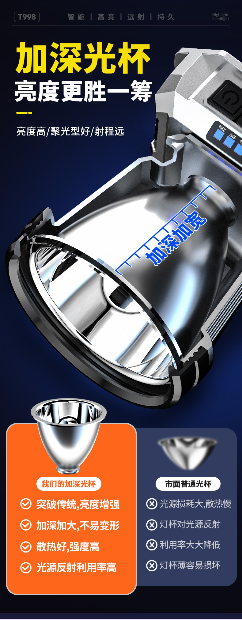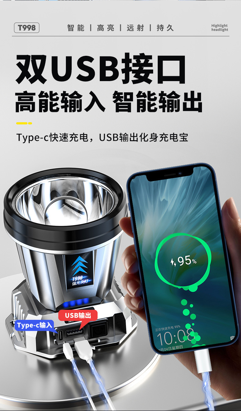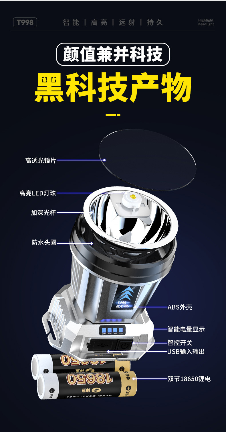 | Color | T269 - faro de luz fuerte con embalaje azul de salida, t269 - faro de luz fuerte con función de banco de energía |