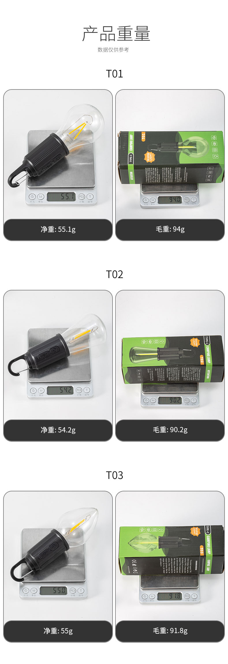 | Color | T01 62mm,T02 54mm,T03 57mm |