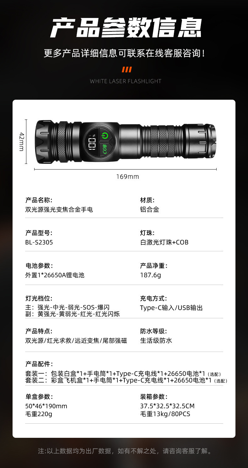 包裹包含:手电筒+Type-C数据线+尾绳+白盒