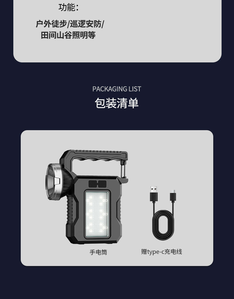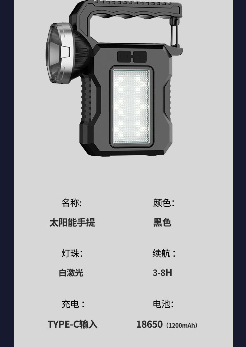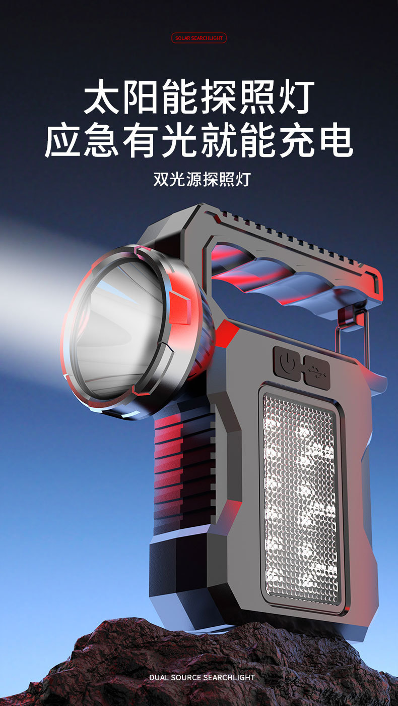 Luz solar al aire libre transfronteriza reflector portátil de luz LED de carga Luz portátil USB de doble fuente de luz Luz de emergencia portátil