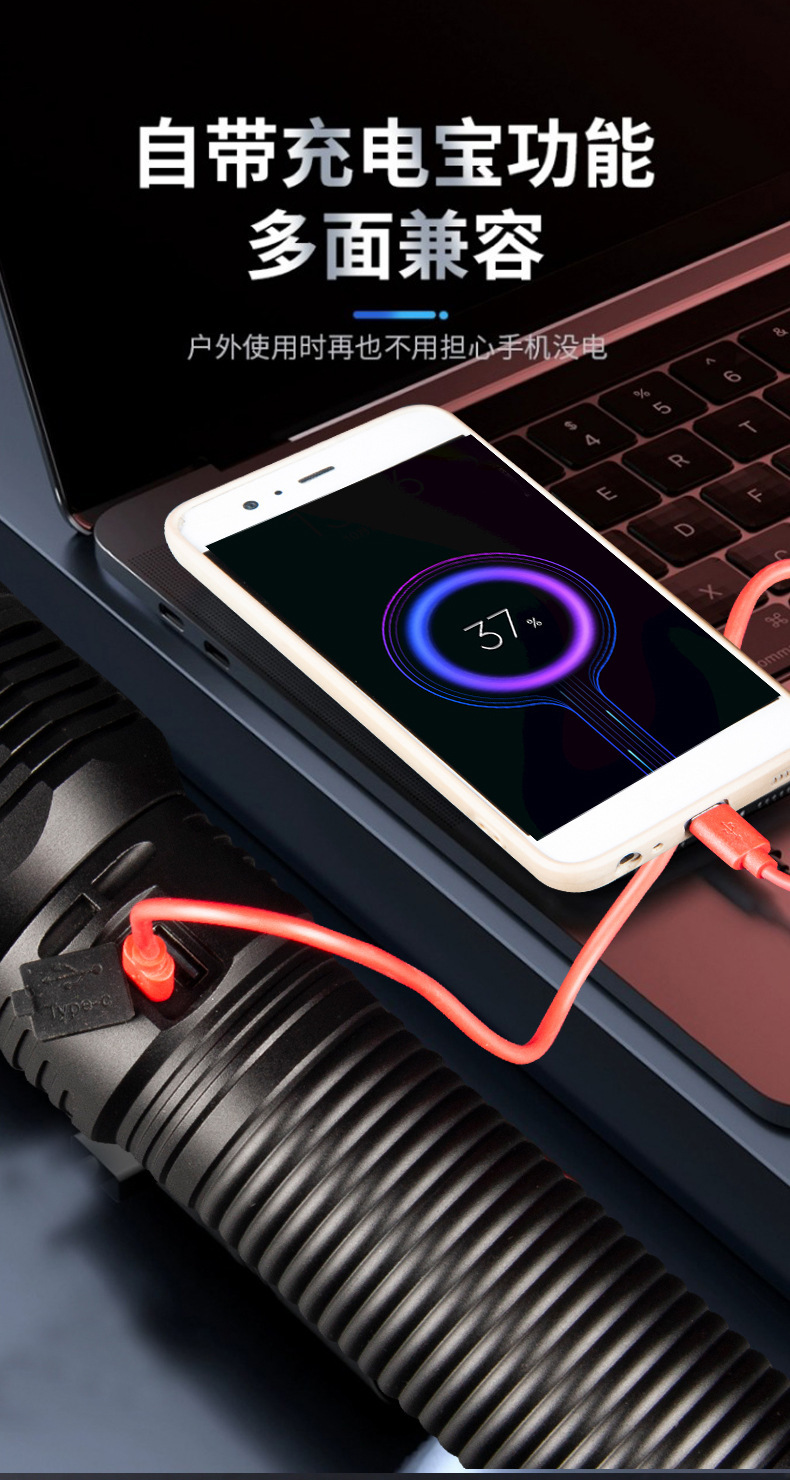 Nueva linterna de iluminación brillante transfronteriza P50/cuentas de lámpara láser linterna de emergencia multifuncional móvil banco de energía
