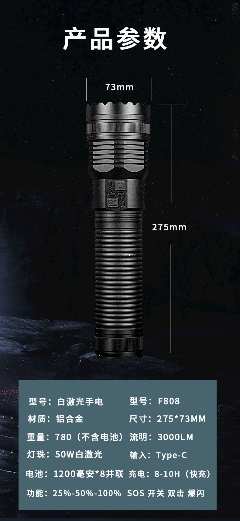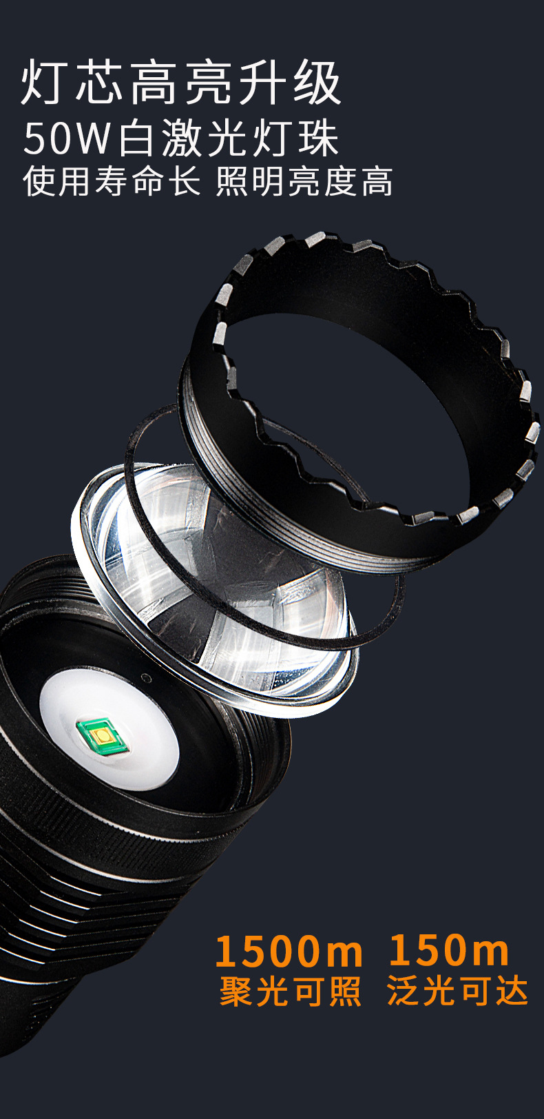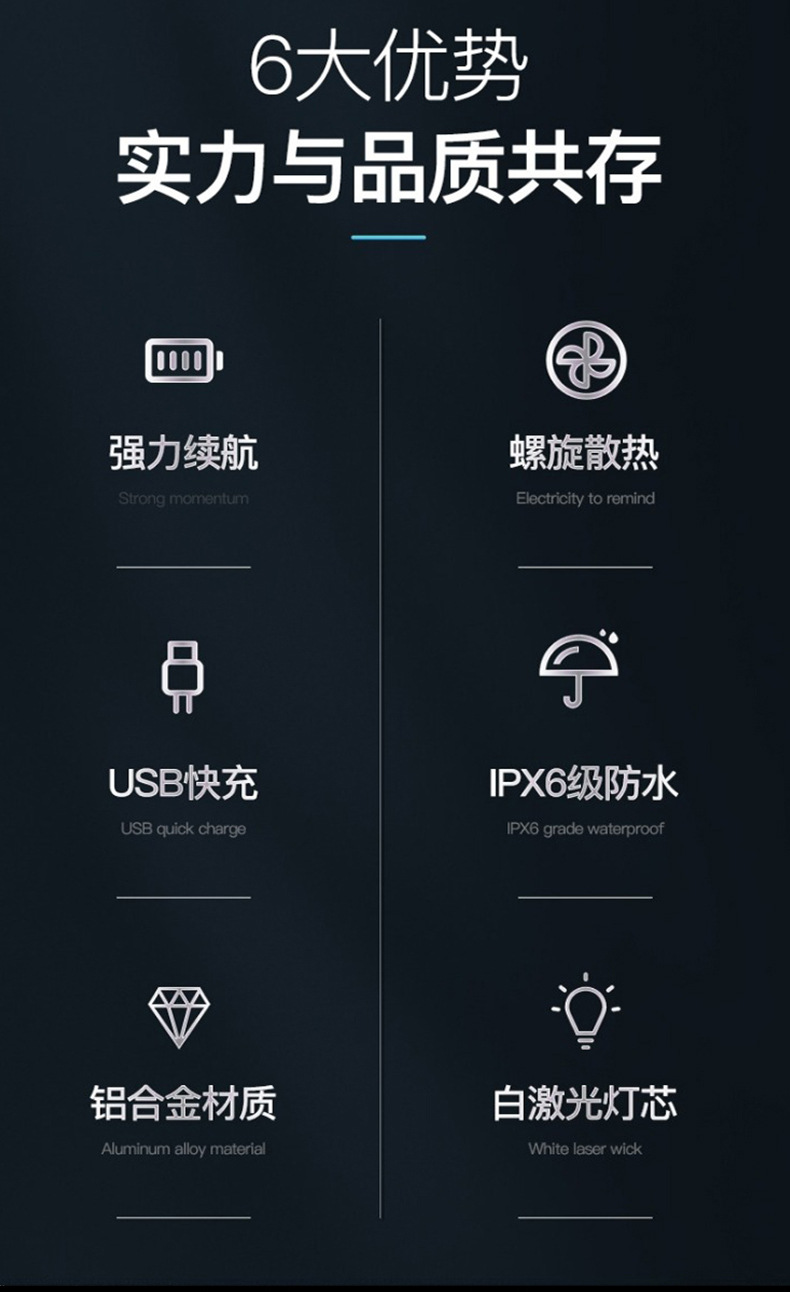 Blanco brillante láser de larga duración resistencia recargable de aluminio impermeable montañismo al aire libre linterna camping