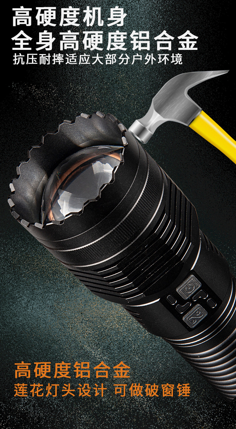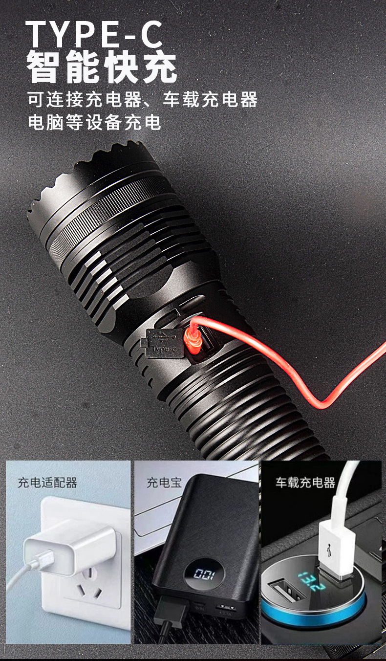 Mini linterna al aire libre multifuncional recargable p50 fuerte cordón ligero portátil fuerte luz tipo-c linterna zoom