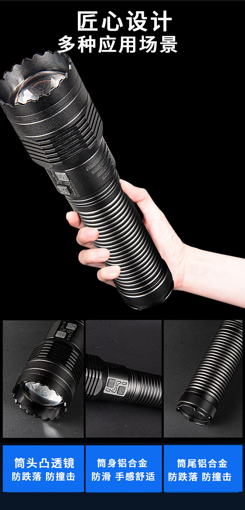 Linterna de luz fuerte LCD digital eléctrico reflector grande portátil luz solar al aire libre emergencia aleación de aluminio reflector