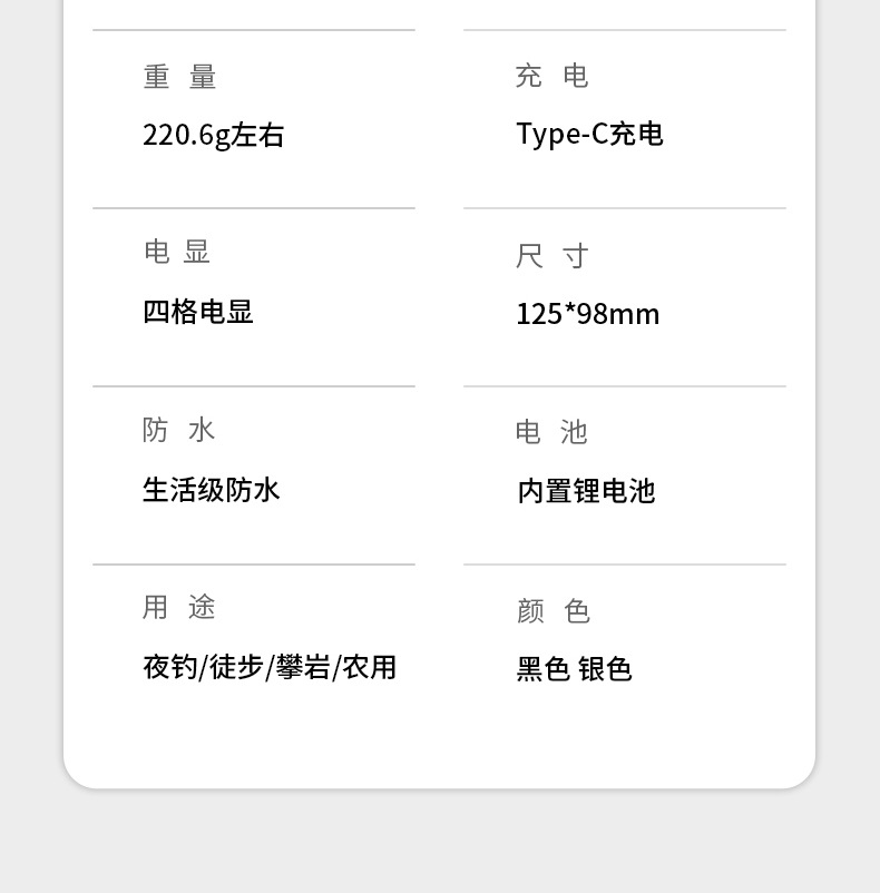 | Entorno aplicable | Senderismo, camping, autodefensa, enseñanza, búsqueda, transporte diario, ciclismo nocturno, espeleología, pesca nocturna, patrulla |
