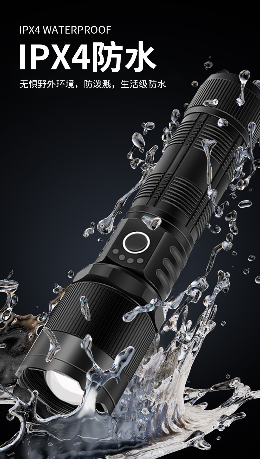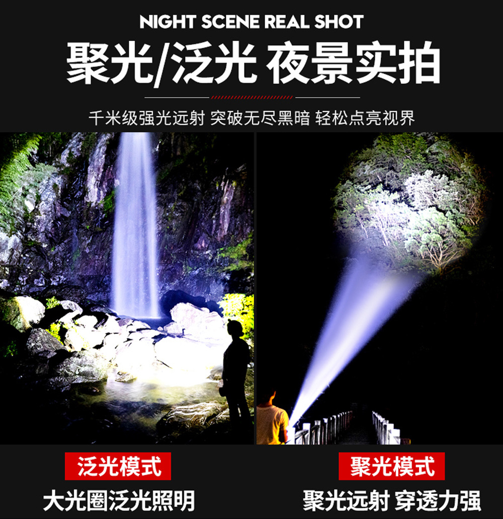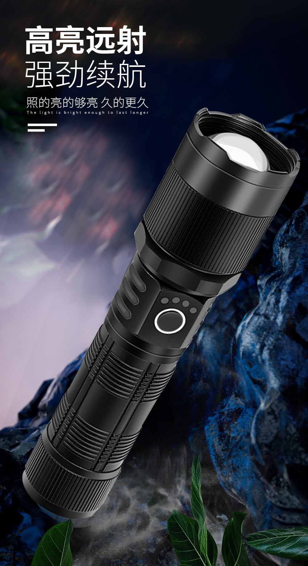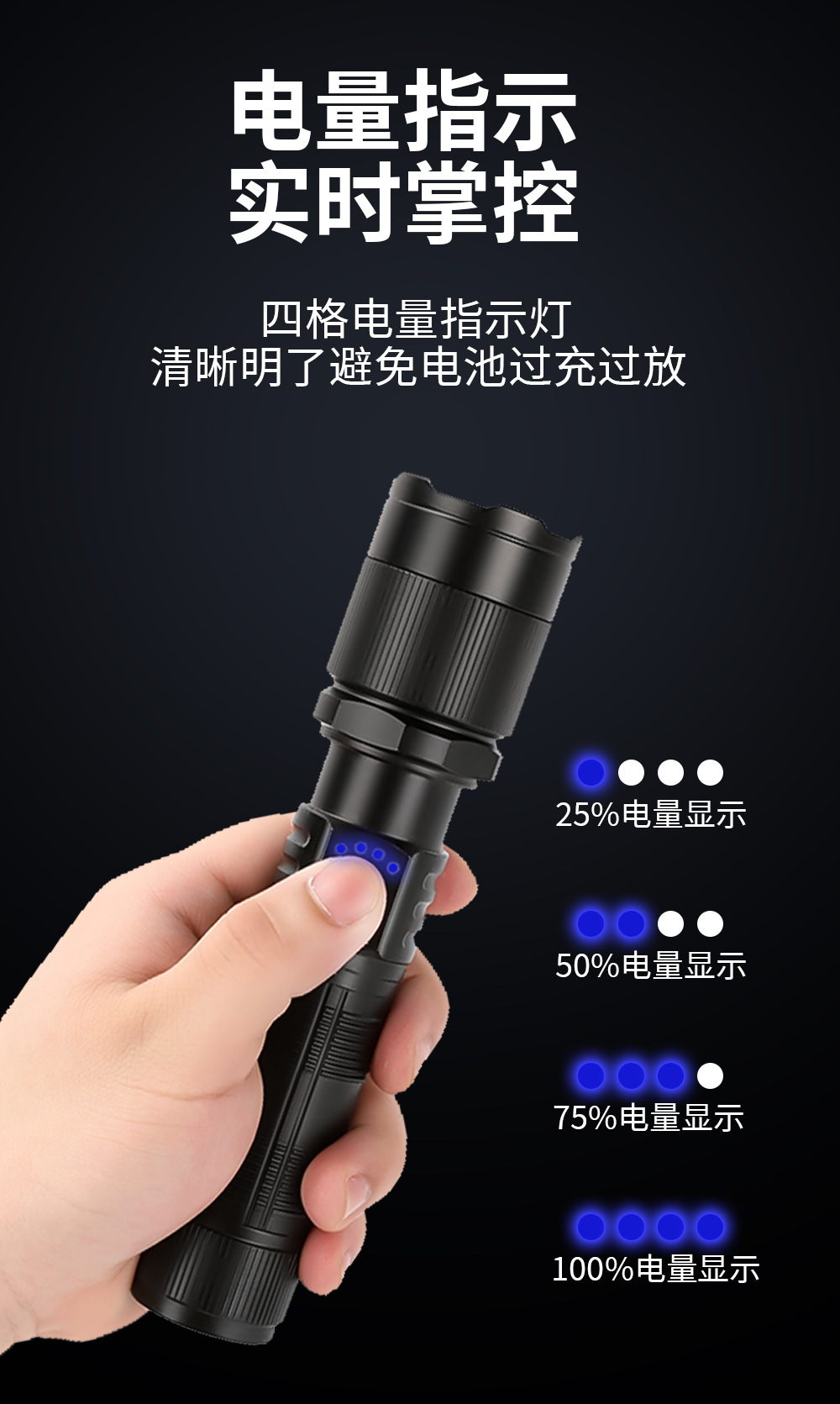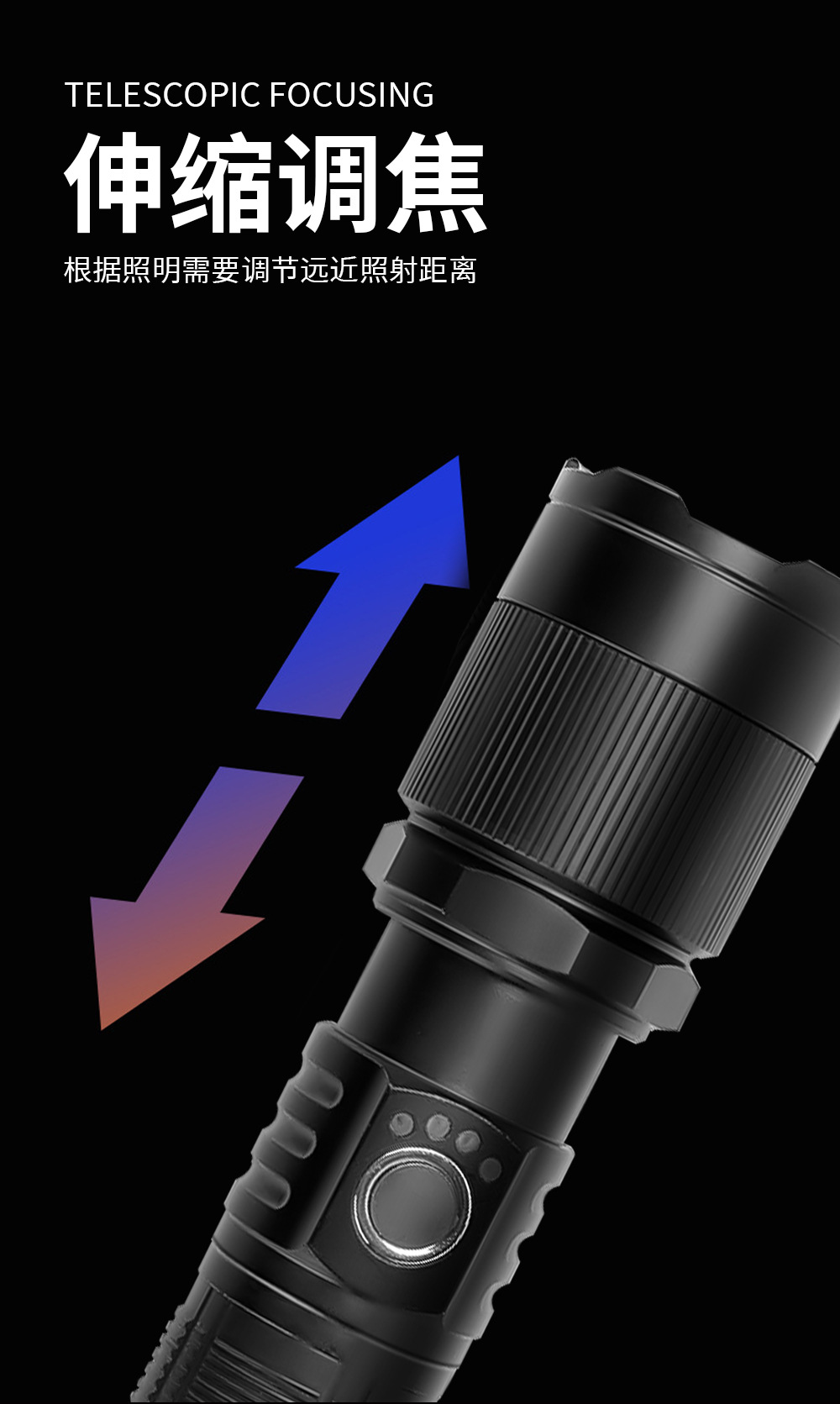 Transfronterizo nueva linterna de patrulla LED al aire libre USB recargable zoom aleación de aluminio luz fuerte linterna de alta potencia